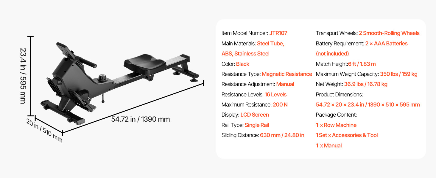 - Supports Up to 350 lbs: This durable rowing machine is designed to accommodate users weighing up to 350 lbs. Its sturdy construction ensures stability and a secure workout experience for individuals of various body types. Equipped with smooth dual wheels, it allows for easy transportation and can be folded vertically for convenient storage, saving valuable space.