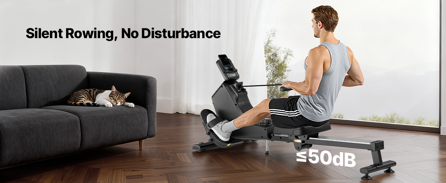 - Smooth and Quiet Operation: This foldable rowing machine features magnetic resistance that operates at under 50 dB, ensuring a peaceful workout environment. Perfect for late-night sessions, it minimizes noise compared to water or air rowers, eliminating splashing or fan sounds.