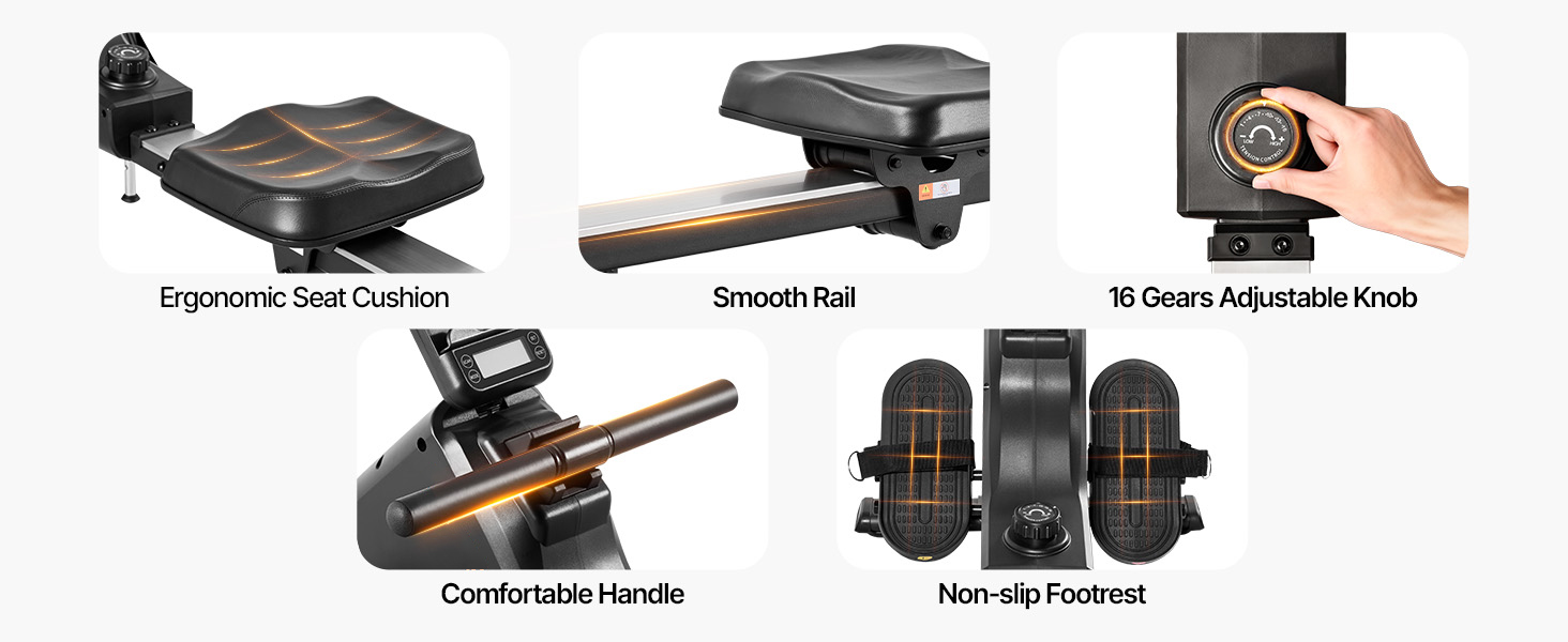 - 16 Adjustable Resistance Levels: This home rowing machine offers 16 levels of magnetic resistance, allowing you to customize your workout intensity from light warm-ups to challenging high-intensity sessions. The easy-to-use knob ensures effortless adjustments for users of all fitness levels.