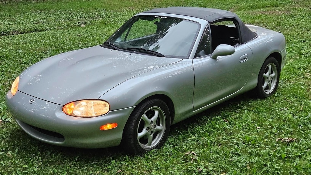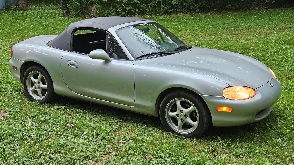 “For sale is a 1999 Mazda MX-5 Miata Convertible in great condition, finished in classic silver with a black soft top, black interior, and a matching front bra. This Miata features the 1.8L engine paired with a 5-speed manual transmission and comes equipped with the desirable Popular Equipment Package. Originally in long-term storage, the car was brought back to life last summer and has since undergone extensive maintenance and upgrades. It received new tires and a new battery in the fall, along with fresh engine, transmission, and rear axle fluids. The clutch slave cylinder was replaced, brake rotors were turned, pads cleaned, and both the brakes and clutch were bled. The interior carpeting was professionally cleaned with the seats removed for a deep refresh. There is a 6-disc CD-changer located in the trunk, which is accessible in the center console. For added performance, the original square exhaust manifold was replaced with a more efficient header-style manifold, and a Jackson MP-62 Supercharger System was installed—boosting the car's power from 140 to approximately 180 horsepower. The supercharger system alone was a $3,000 investment and significantly enhances the driving experience while retaining the lightweight, balanced feel that Miatas are loved for. Kelley Blue Book values this car at $7,500 before the performance upgrades. Carfax and window sticker available upon request. This clean, well-cared-for, and truly fun-to-drive roadster runs great and is ready for its next enthusiast.”