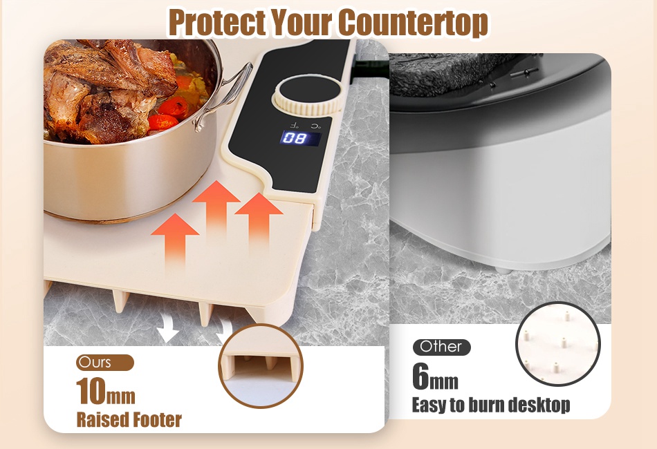 - Adjustable 14-Level Temp & 10Hrs Timer:Come with 14 adjustable temperature settings,ranging from 35℃(95°F) to 100℃(212°F),allow you to precisely control the heat level based on specific needs,whether you're keeping beverages warm or maintaining temperature for cooked dishes. Clearly monitor the current temperature on digital screen.