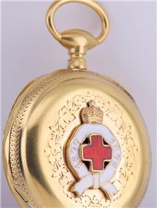 La montre a un étui argenté fine représentant le badge Imperial Rus Rouge Croix Miniature Medicine Award.