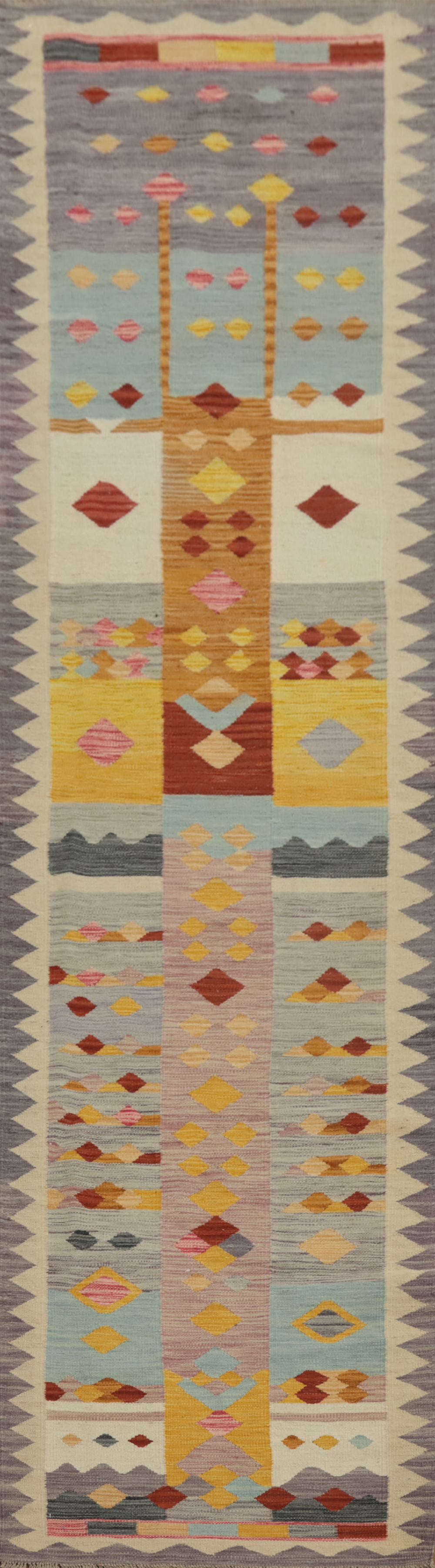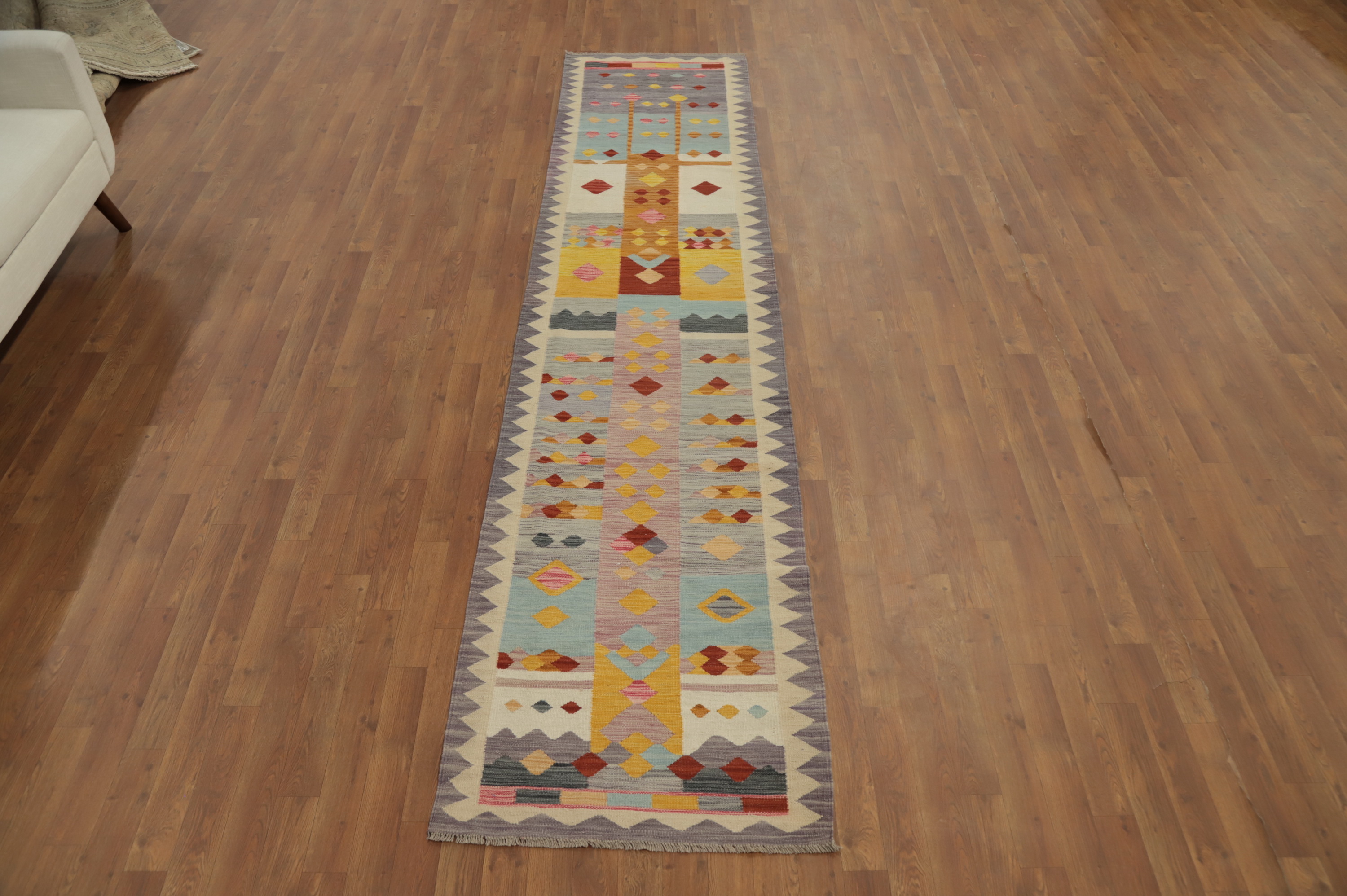 Kilim Vegetable Dye Runner Rug 3x11 Geometric Hand-woven Reversible Wool Carpet