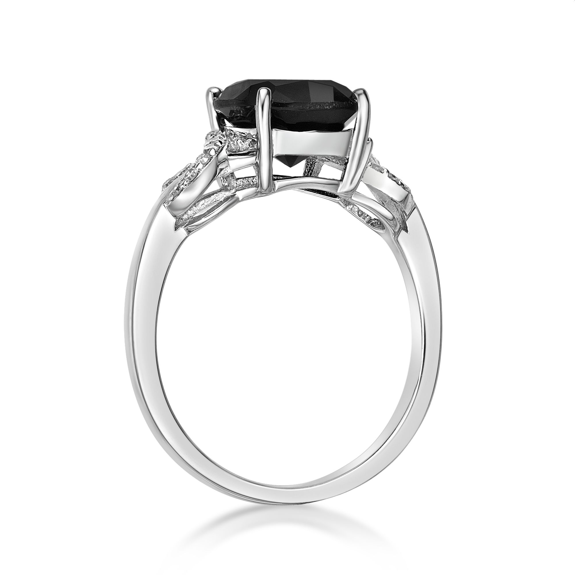 Indulge in the mysterious allure of our Women's 925 Sterling Silver Cushion Cut Black Onyx Ring with 0.10 cttw Natural White Diamond. This exquisite piece is designed to captivate the imagination and add a touch of elegance to any outfit. The deep, rich black onyx stone exudes sophistication and glamour, making it the perfect accessory for those special occasions when you want to make a statement.