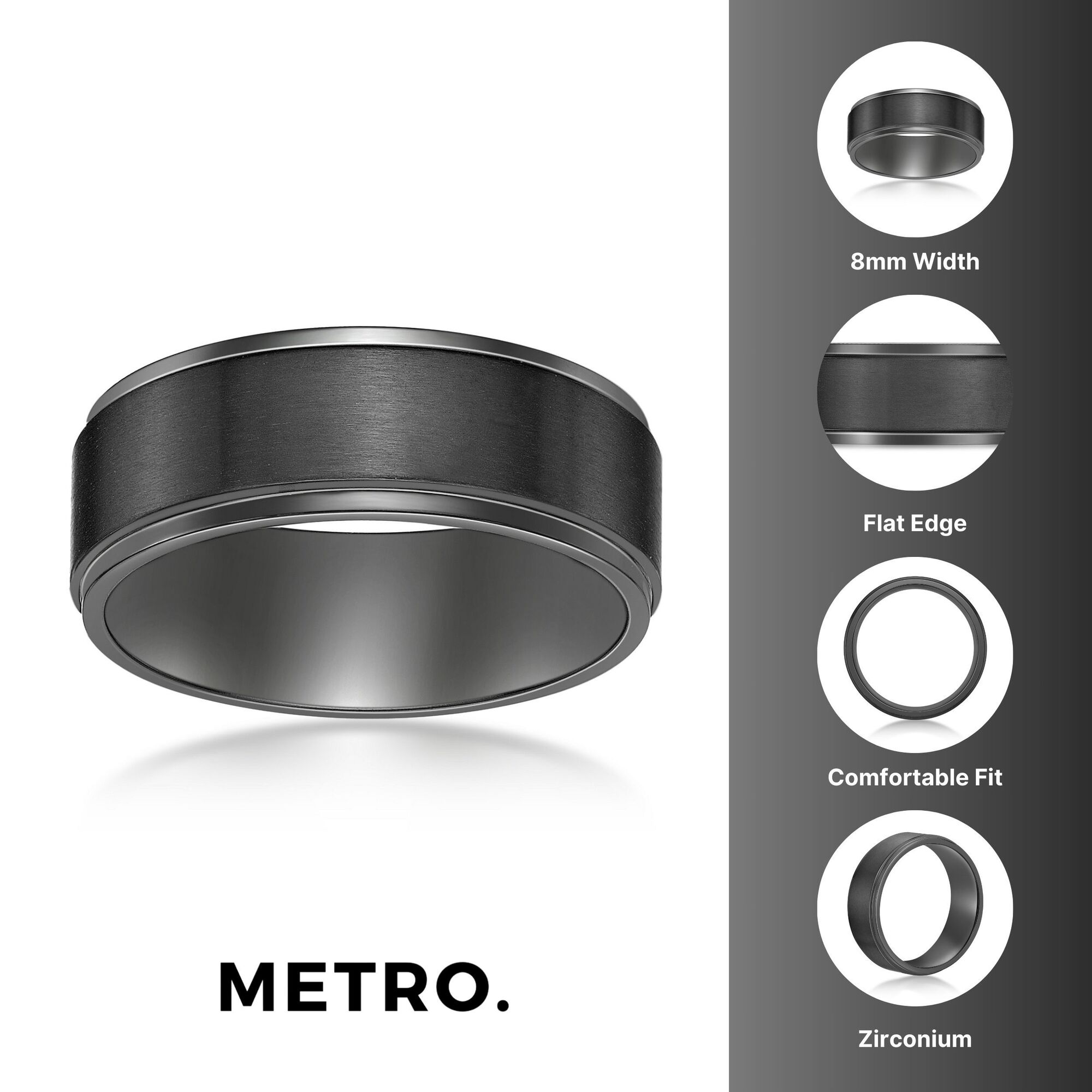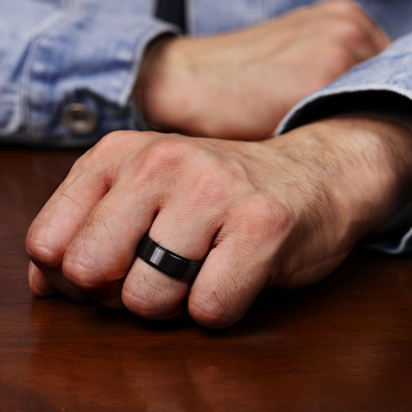 Introducing our Men's 8MM Black Zirconium Flat Edge Ring, a sleek and modern accessory that's both stylish and durable. Made from high-quality black zirconium material, this ring is scratch-resistant and built to last, making it perfect for daily wear. The flat edge design adds a touch of sophistication to this classic style, making it a versatile accessory that can be worn with both casual and formal attire. The 8MM band width provides a comfortable fit without feeling too heavy or bulky on the finger. The black zirconium construction of this ring ensures that it is resistant to scratches, dents, and other types of damage that can occur from everyday use. This means you can wear this ring with confidence, knowing that it will maintain its pristine appearance for years to come. This Men's 8MM Black Zirconium Flat Edge Ring is not only durable and stylish but also incredibly versatile. It pairs perfectly with any outfit, making it a must-have accessory for any fashion-conscious man. Available in multiple sizes, this ring is perfect for anyone looking for a comfortable and stylish addition to their jewelry collection. Don't settle for a basic ring when you can have a stunning and durable Men's 8MM Black Zirconium Flat Edge Ring. Order yours today and elevate your style to the next level!