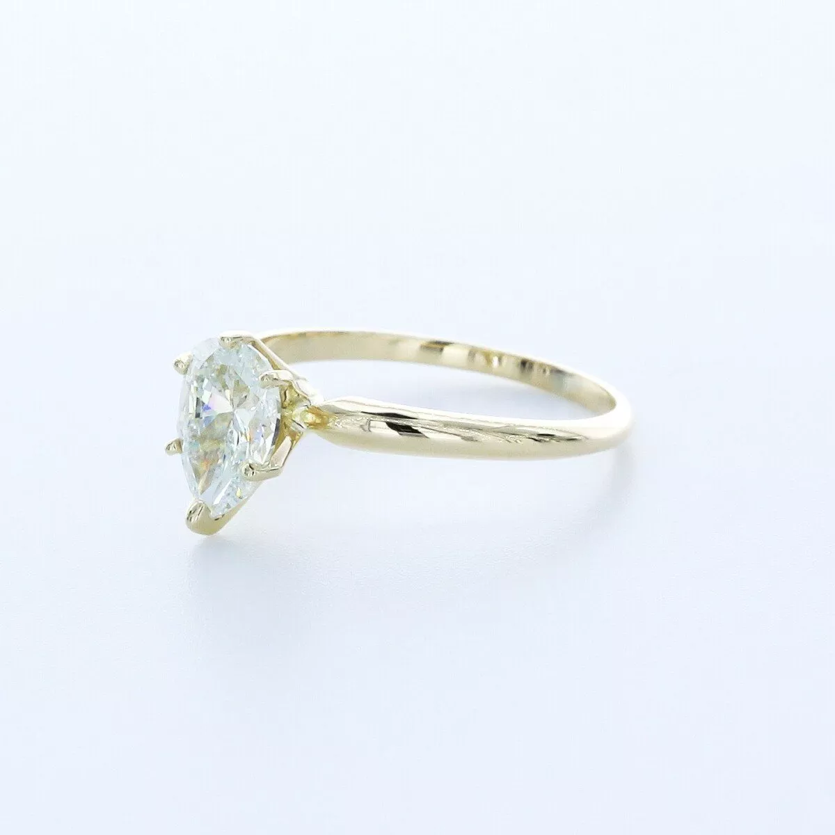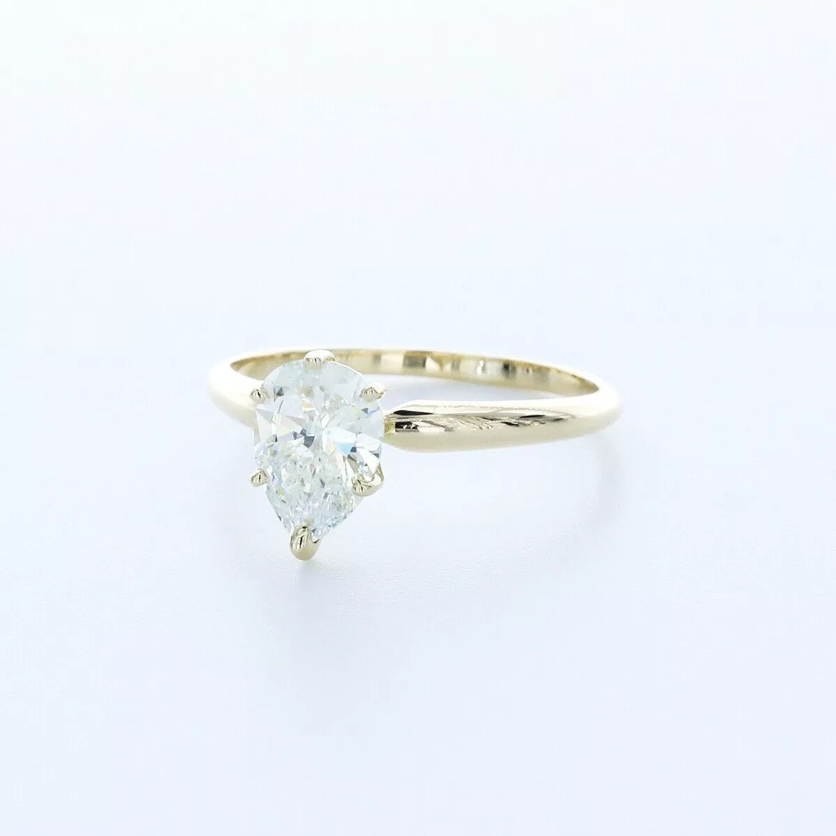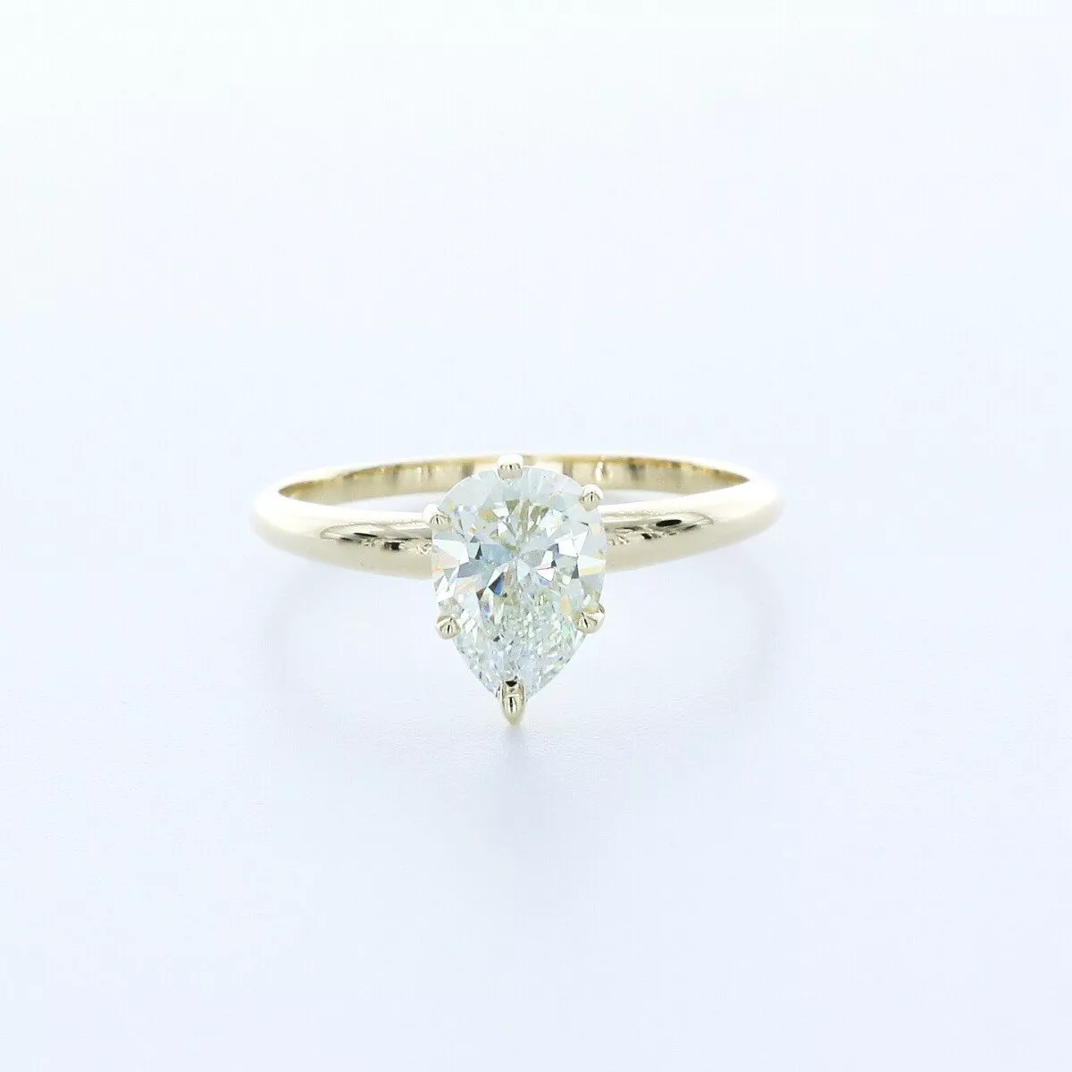 Solid 14K Yellow Gold Solitaire Engagement Ring Classic AGI Cert 1.56 CT Pear Lab-Grown Diamond H VS1