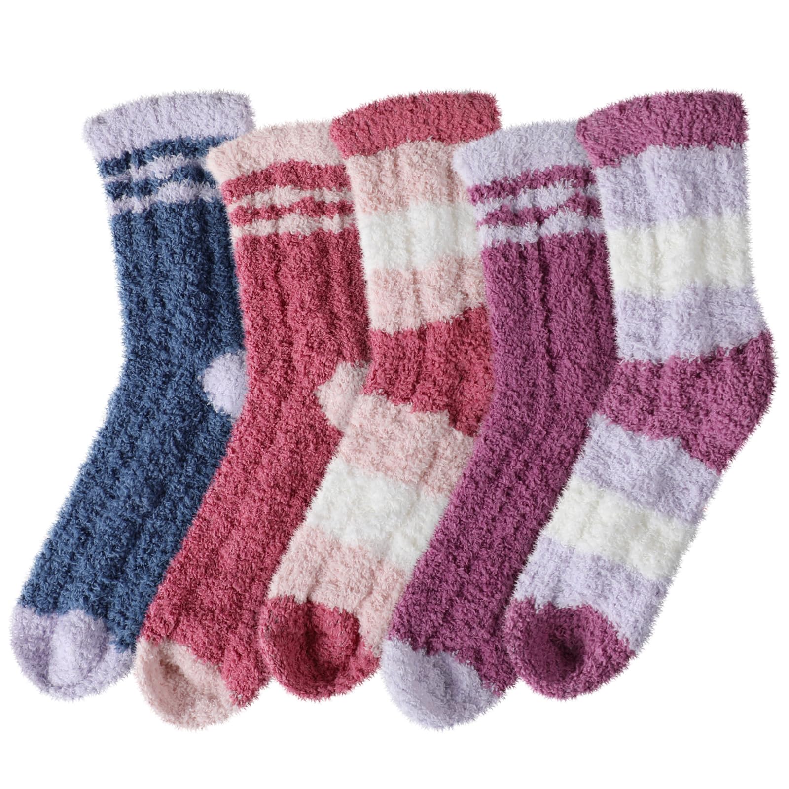- BEST CHOICE: This women fuzzy socks are suitable for many situations, perfect for everyday wear, work, sleeping, boot, house, indoor, travelling, wear sleeping socks while you go to bed. Come with 5 pairs fuzzy socks, colorful socks add a unique element to any outfit. You can also choose the womens fuzzy socks pack as a Thanksgiving, Christmas, New Year, or Birthday present to your family and friends