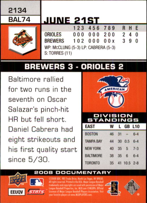 2008 Upper Deck Documentary #2134 Jeremy Guthrie - BB