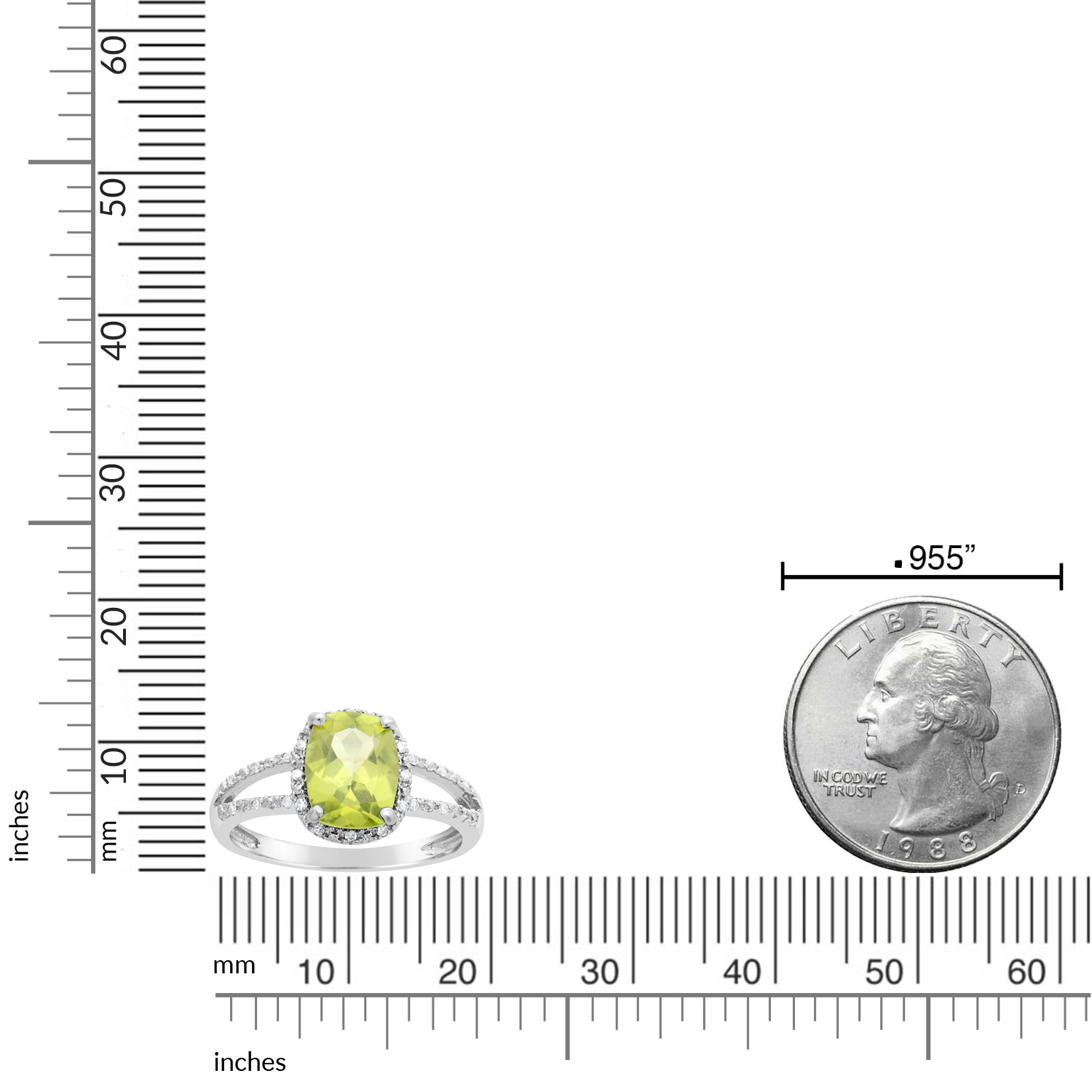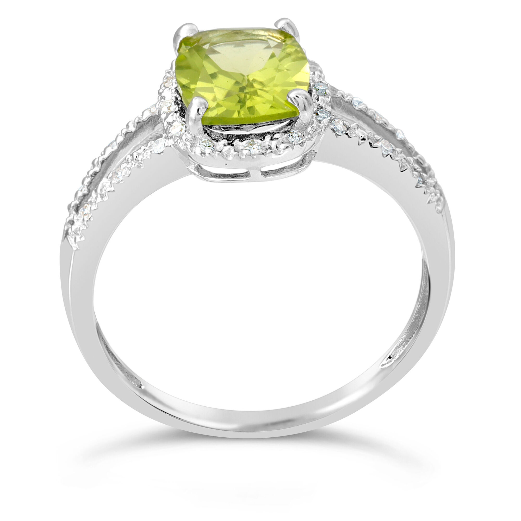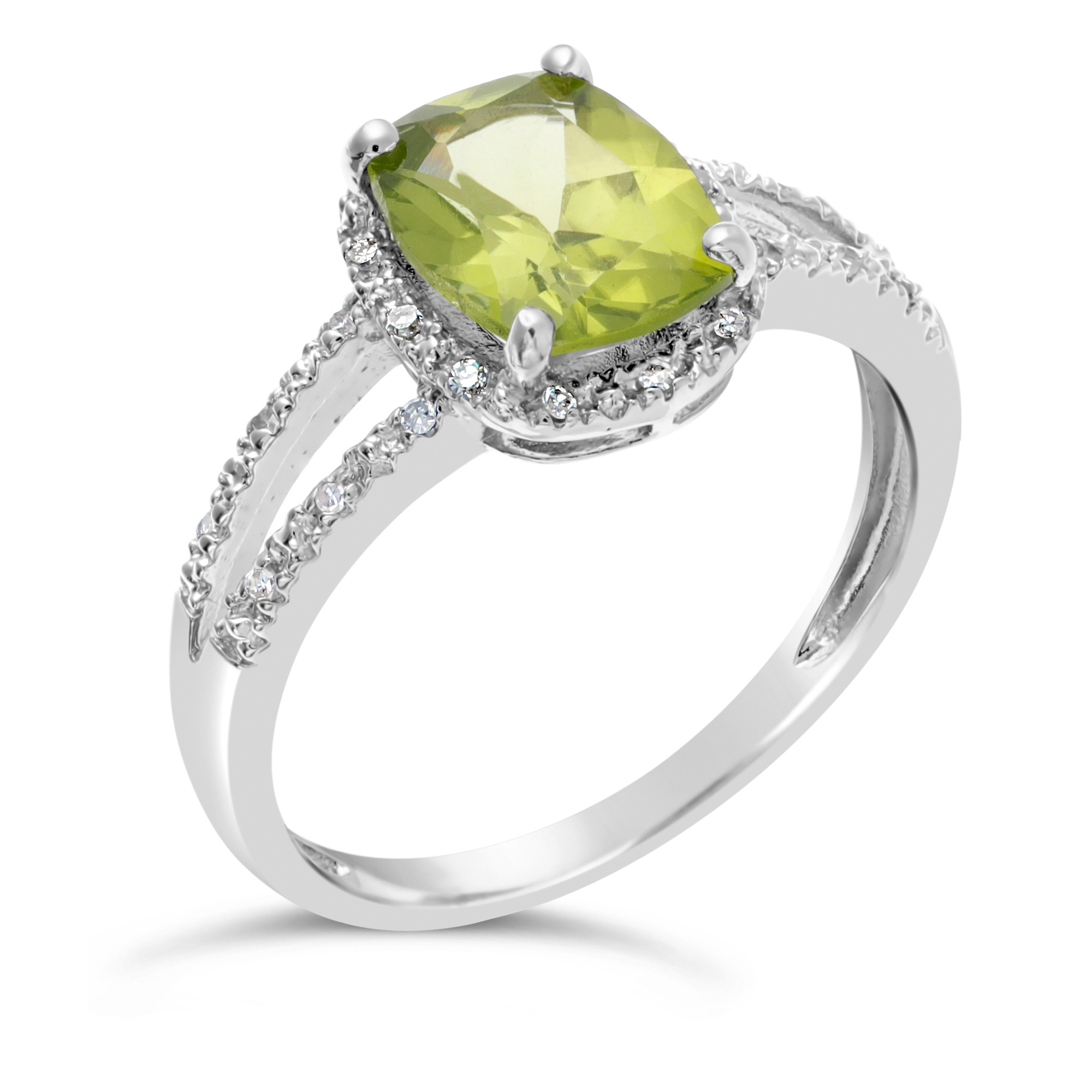 Split Shank Halo Ring 2 cts Green Peridot Pave Diamond Accents Silver - Size 6
