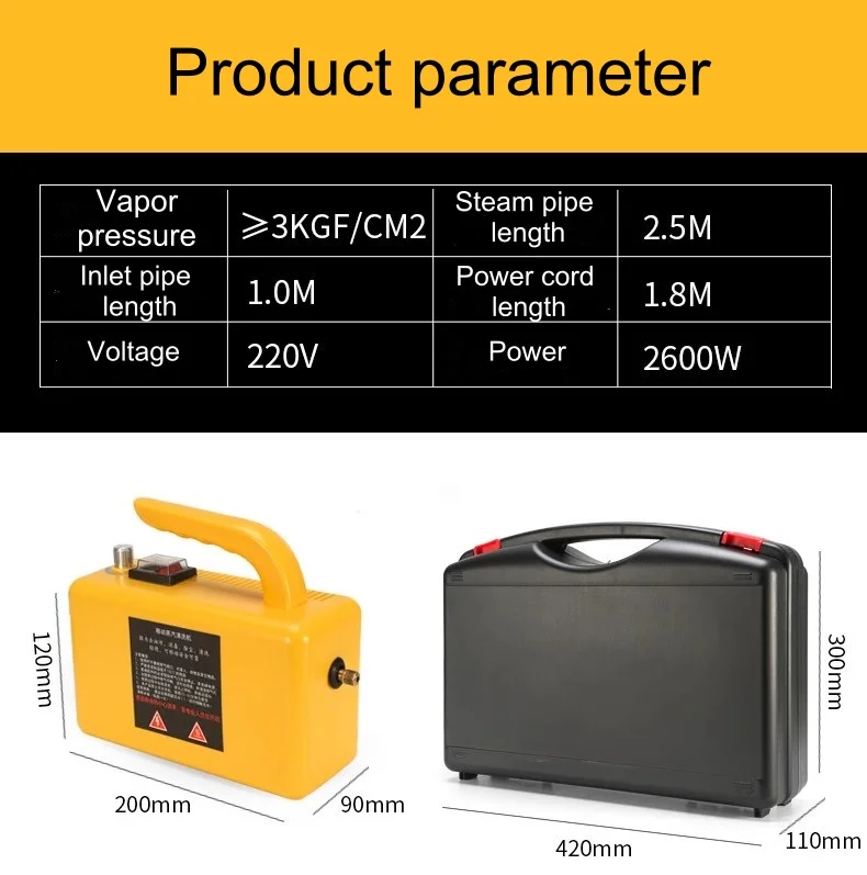 -Through the high-pressure high-temperature steam and strong spray force, with anti-dry, automatic temperature control reset multiple protection. Anti water splash, grounding protection, overload protection, anti-shock, anti-pressure, anti-corrosion.