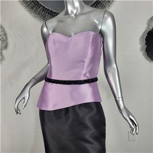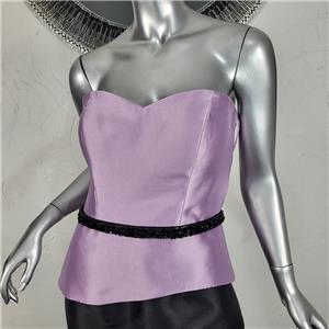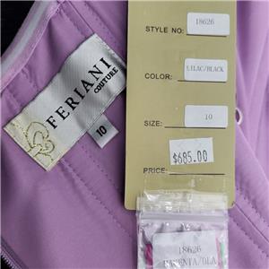 NWT~$685~FERIANI COUTURE~8/10~LILAC BLACK STRAPLESS BEADED MERMAID TRUMPET DRESS~BLACK BEADED RHINESTONE EMBELLISHED BELT. FULLY LINED. CORSET BUST. BACK ZIPPER. ZIPPER STICKS A BIT WHEN HITTING THE BELT. JUST HAVE TO PULL ON IT. SIZE 10. MAY ALSO FIT A SIZE 8. SEE FERIANI SIZE CHART POSTED FOR MEASUREMENTS. GORGEOUS ON.