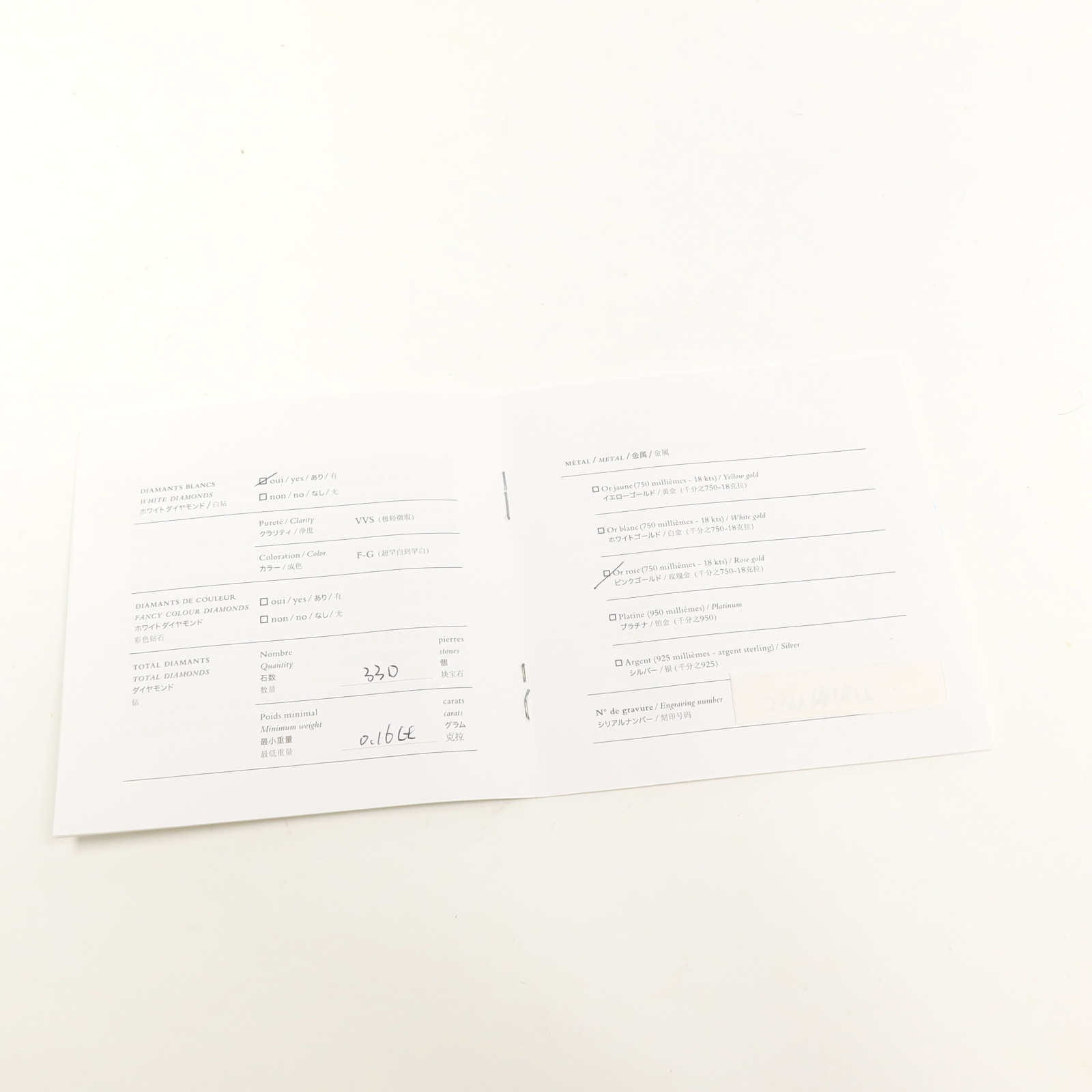 | Metal Purity | diamond × K18PG(Rose Gold) |