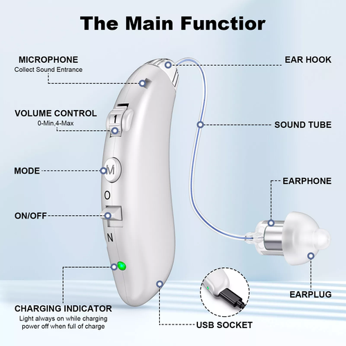1.It is USB rechargeable hearing assist without frequent battery replacement.