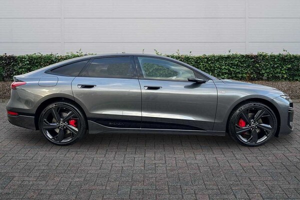 Available from 31/03/2026. Audi A6 e-tron Sportback Special Edition 315kW Quattro 100kWh Edition 1 5dr Auto in Daytona grey, pearl effect. Specification Includes Memory feature on driver side,Heated steering wheel,S line,Park assist plus,Comfort auxiliary air conditioning,Adaptive cruise assist plus,e-tron sports sound,MMI front passenger display,Front emergency brake assist,Surround view cameras,Digital light signatures,Dinamica microfiber/leather combination with waterfall pattern and 'S' embossing,Exterior package, Black,Brake calipers painted Red,Tech plus,Climate Control package for winter,Interior trims in vanadium look,Sun protection glass, tinted,Sport seats, front,Illuminated Audi rings, rear,Hill hold assist,Equipment package for Great Britain,Sport leather steering wheel, 3-spoke, flat top and bottom with multifunction and shift paddles,Disk brakes, front, 18-inch, brake calipers in Red,Disk brakes, rear, 18-inch, brake calipers in Red,Bumpers, S line,Front seats, electrically adjustable,Heated front/rear seats,Swerve assist and turn assist,Window trim strips and attachments, dark,Inlays, Carbon Square, Structure,Rear occupant detection,21in Audi Sport wheels, 5-arm dynamic, black metallic, 8.5J9.5Jx21, 245/40275/35 R21 tyres,Side airbags in front and rear with head airbag system and front interaction airbag,Black exterior mirror housings,Lane departure warning with emergency assist,Black door handle inserts,Proactive passenger protection system for front, sides and rear,Side assist and exit warning, rear cross-traffic assist and rear turn assist,Matrix LED headlights with dynamic indicator,Front emergency brake assist,LED rear lights pro,Parking system plus with distance display,Climate Control package for winter,Assist package Drive and Park plus,Assist package, protective and warning systems plus,Audi Application Store & Smartphone interface,Ambient Lighting package,Digital Audio Broadcasting,Audi digital key,Audi drive select,Center armrest, front,Exterior mirrors, electrically, adjustable, heated and folding, on automatically dimming on both sides,Tire pressure loss indicator,Separate daytime running light with automatic headlight control and automat. Coming and Leaving Home feature,Audi sound system,Phone compartment with wireless charging,MMI navigation plus with MMI touch.