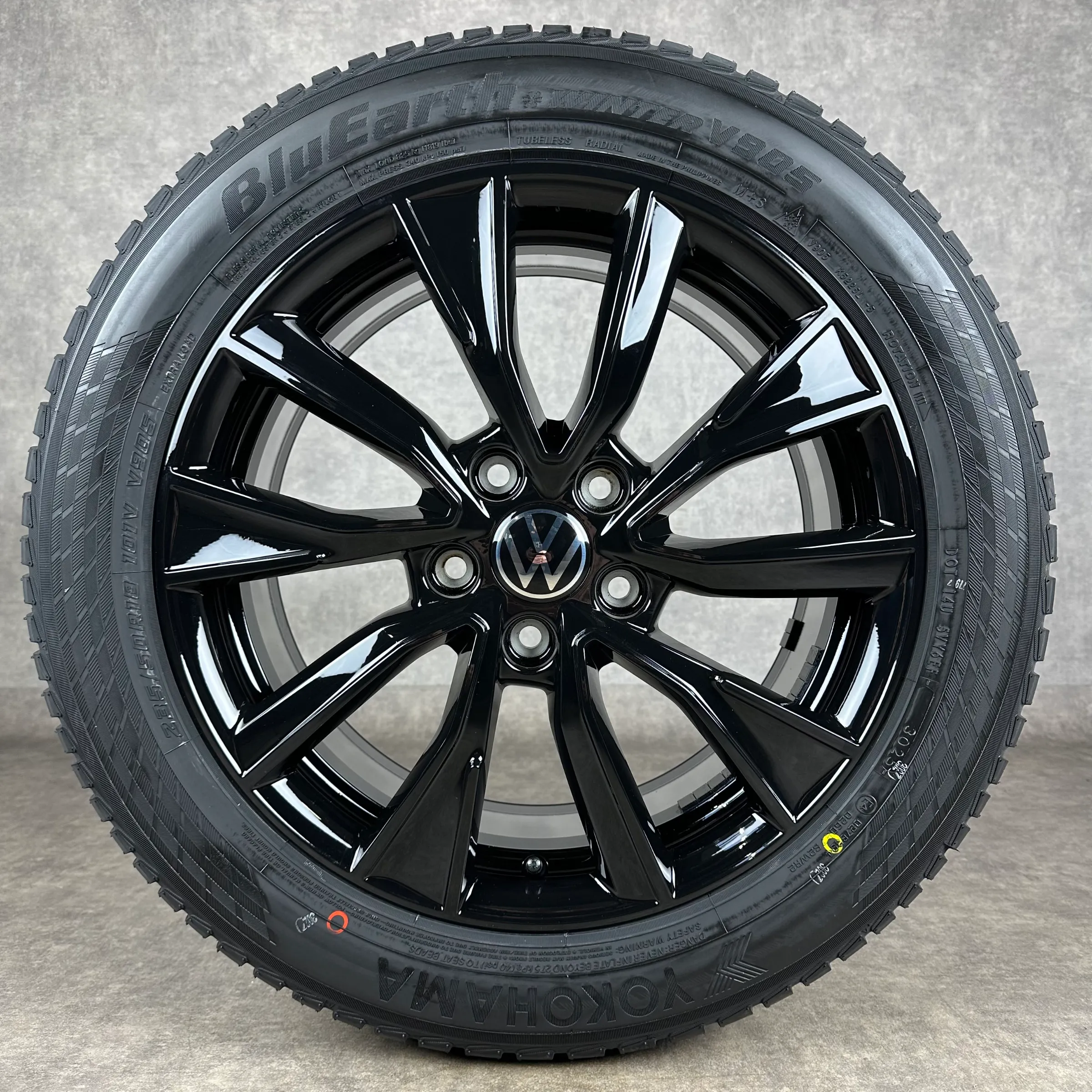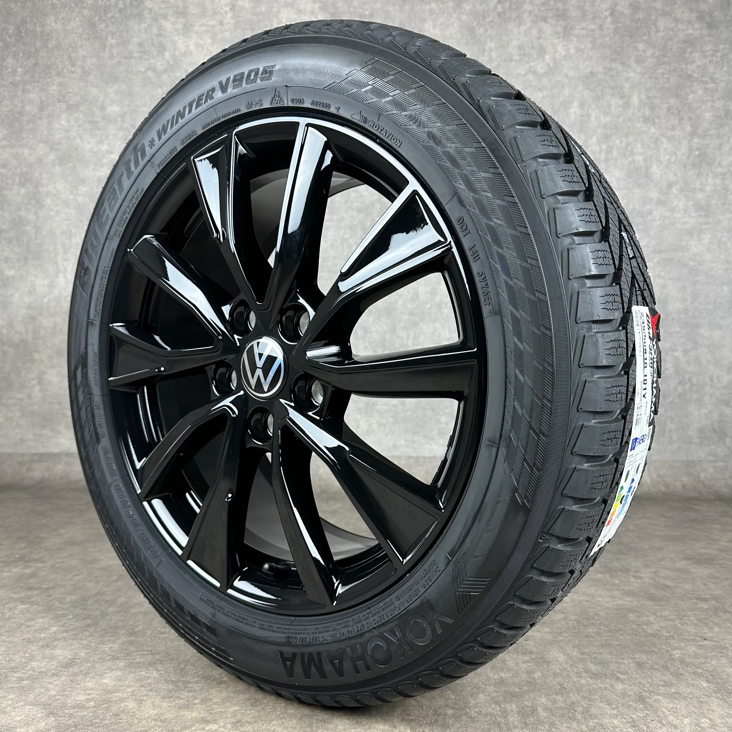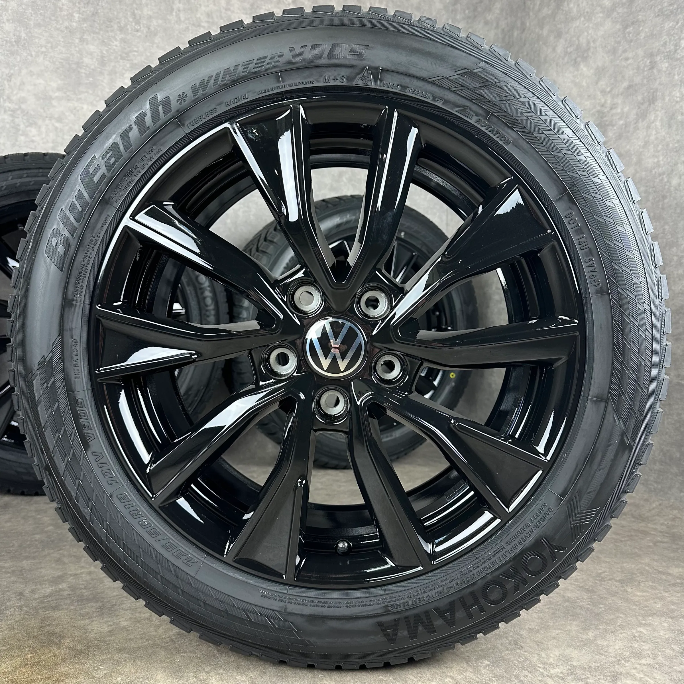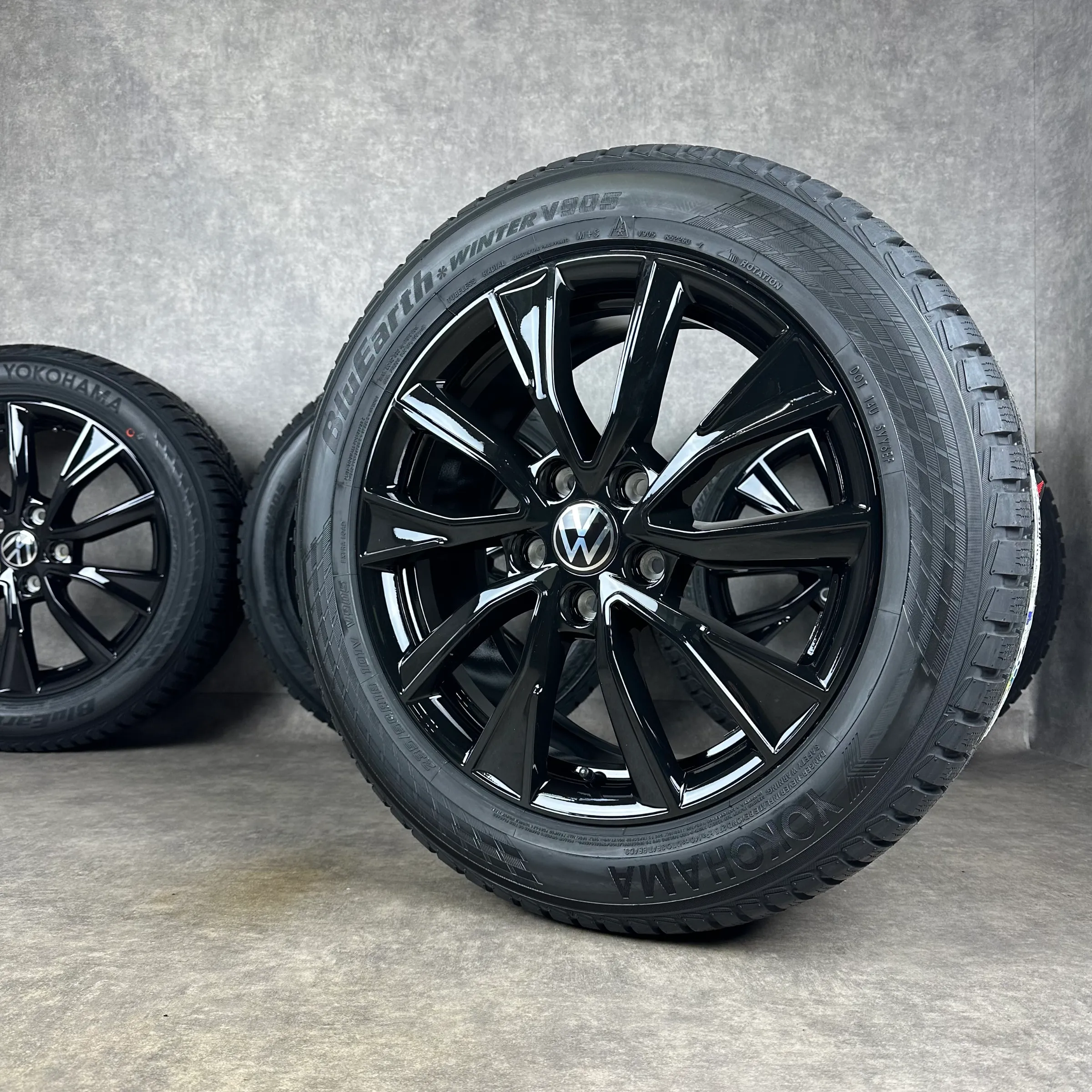 Angeboten werden 4x Original VW Toshima Winter-Kompletträder in schwarz hochglanz.