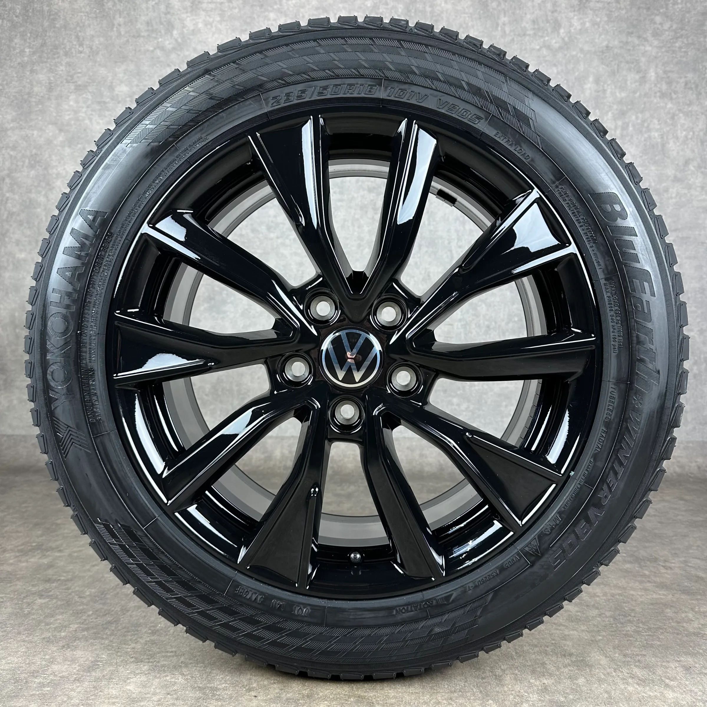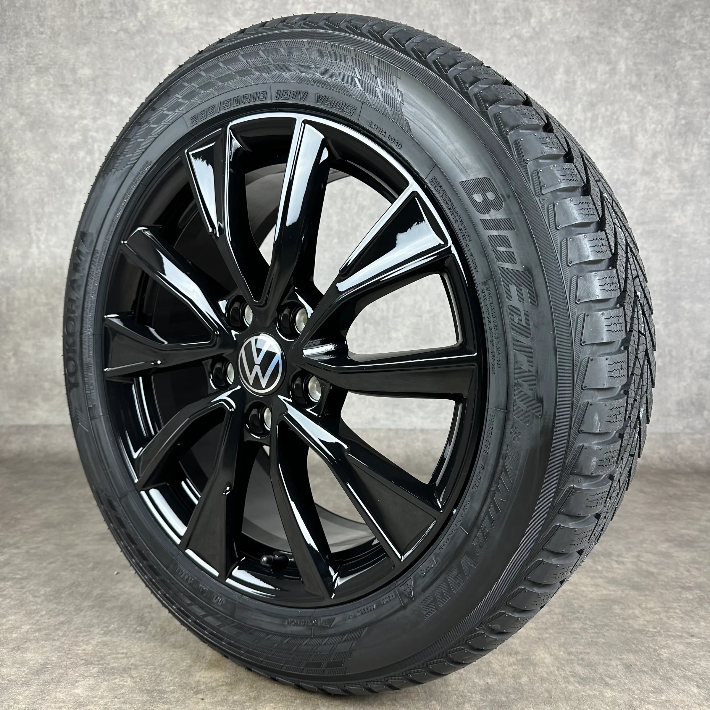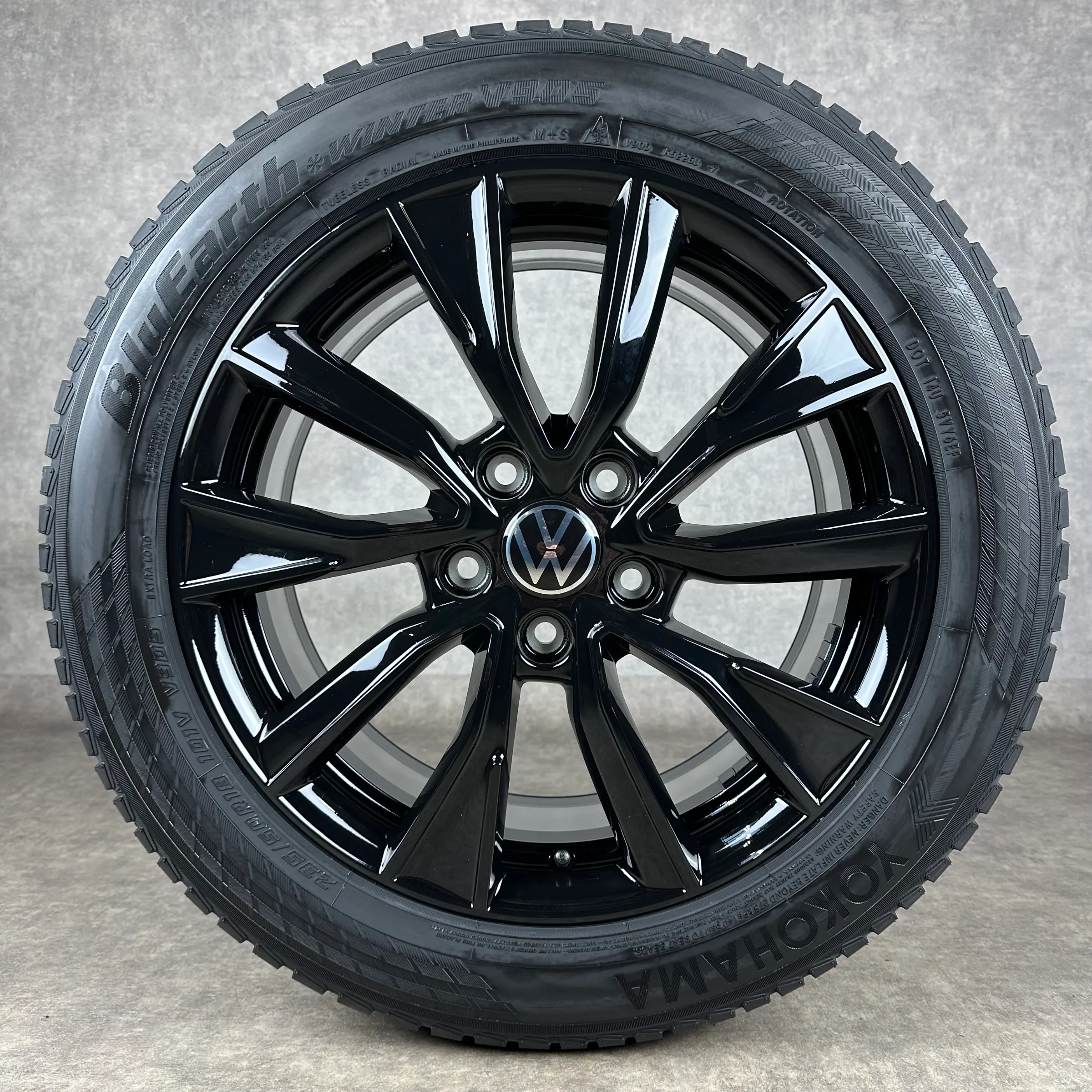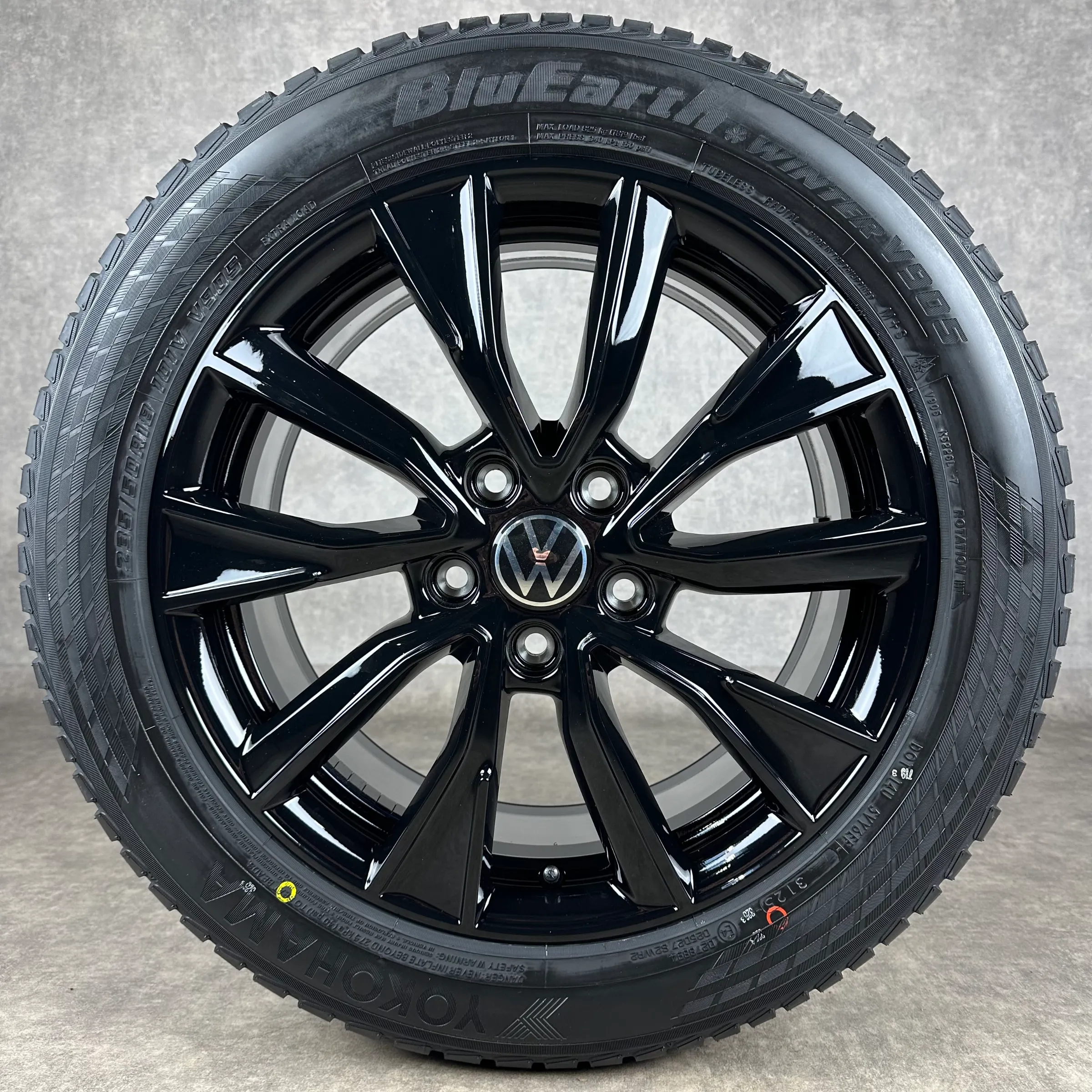 Angeboten werden 4x Original VW Toshima Winter-Kompletträder in schwarz hochglanz.