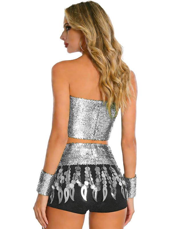 The addition of sequins brings a touch of glamour and sparkle, making the wearer stand out in the crowd and perfect for the disco-themed trend.