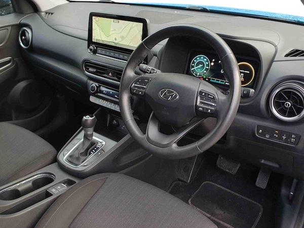 ..10.25'' touchscreen centre console display satellite navigation with live services and mapcare, Bluetooth connectivity, Digital clock, Driver attention warning, Driver supervision instrument cluster with 10.25'' LCD display, eCall emergency call system, Forward collision assist with pedestrian monitoring and cycle detection, Front parking sensor, Intelligent speed limit warning, Lane follow assist, Lane keep assist, Leading vehicle departure alert (LVDA), Parking system with rear camera and guidance system, PAS, Phone connection with apple carPlay and android auto, Rear parking sensor, Roadside assistance, Smart cruise control with stop and go functionality, Windscreen washer fluid sensor and warning indicator, Wireless phone charging pad, Front and rear USB ports, Krell premium audio system with 8 speakers including external amplifier and subwoofer, RDS and Digital DAB, Steering wheel mounted audio/phone controls, Auto dimming rear view mirror, Automatic headlights with dusk sensor, Automatic windscreen wipers with rain sensor, Body colour door mirrors and handles, Door mirror integrated indicators, Electric front/rear windows with drivers one touch/anti-trap, Electrically adjustable and heated door mirrors, Front fog lights, Halogen headlights, LED daytime running lights, LED rear lights, Painted anthracite body garnish, Positioning Lights - LED, Power folding door mirrors, Privacy glass - Rear windows and tailgate, Rear roof spoiler with integrated LED brake light, Rear skid plate - silver, Rear wiper, Roof rails, Solar glass with front door glass and windscreen shade band, Windscreen auto defog function, 12V power outlet in front console, 60/40 split folding rear seat, Adjustable head restraints, Air conditioning climate control, Ambient lighting, Centre interior light, Cloth upholstery, Door scuff plate, Driver's seat electric lumbar support, Driver's seat height adjustment, Driver/passenger front seatback pockets, Driver/passenger sunvisors and illuminated vanity mirrors, Front interior light, Front passenger seat manual adjustments, Heated front seats, Heated steering wheel, Height/reach adjustable steering column, Isofix rear child seat fastenings, Leather wrapped steering wheel and gear knob, Luggage compartment lighting, Luggage hooks, Luggage net, Metal paint effect interior door handles, Parcel shelf, Rear centre console with air vents, Sunglasses holder, Vertical adjustment rear head restraints, Trailer wiring package - Kona, Airbags -