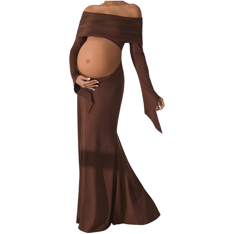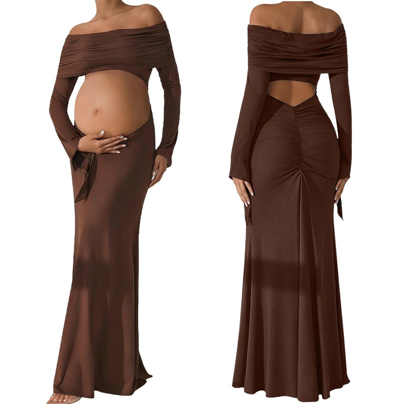 The off-shoulder design is trendy and feminine, adding a touch of elegance, making pregnant women look more charming.