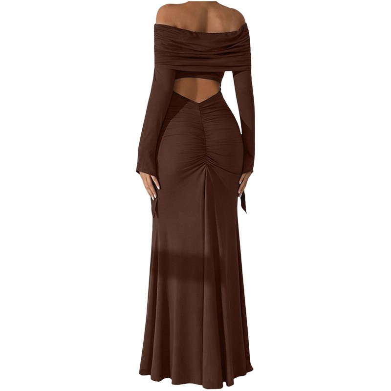 The ruched back design not only adds a stylish element but also helps to conceal the back and enhance the overall aesthetic of the dress.