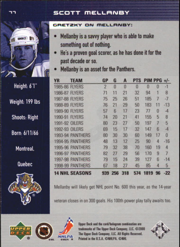 1999-00 Wayne Gretzky Hockey #77 Scott Mellanby - HKY