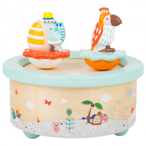En la plataforma inferior del castillo, los piratas giran al son de una pequeña melodía. Los ahorros se pueden almacenar en la torre superior.