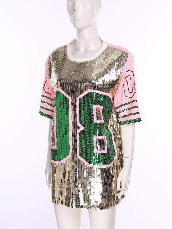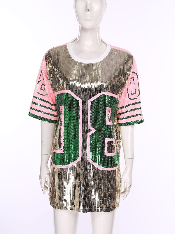 Crafted from a blend of polyester and sequins, this T-shirt is not only comfortable to wear but also sparkles with every movement, adding a touch of glamour.