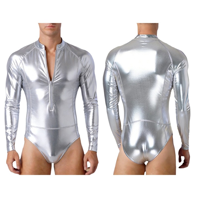 Long-sleeve one-piece bodycon style hugs the body closely, showing off the male figure and creating a fashionable and trendy silhouette.