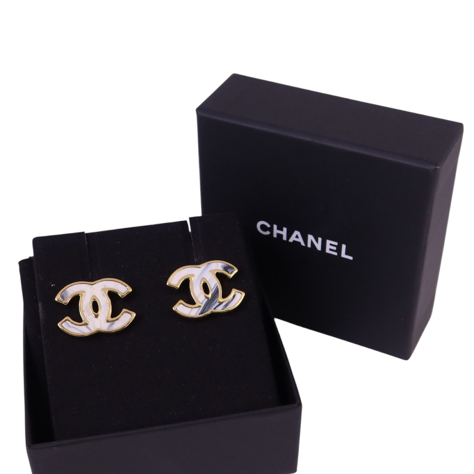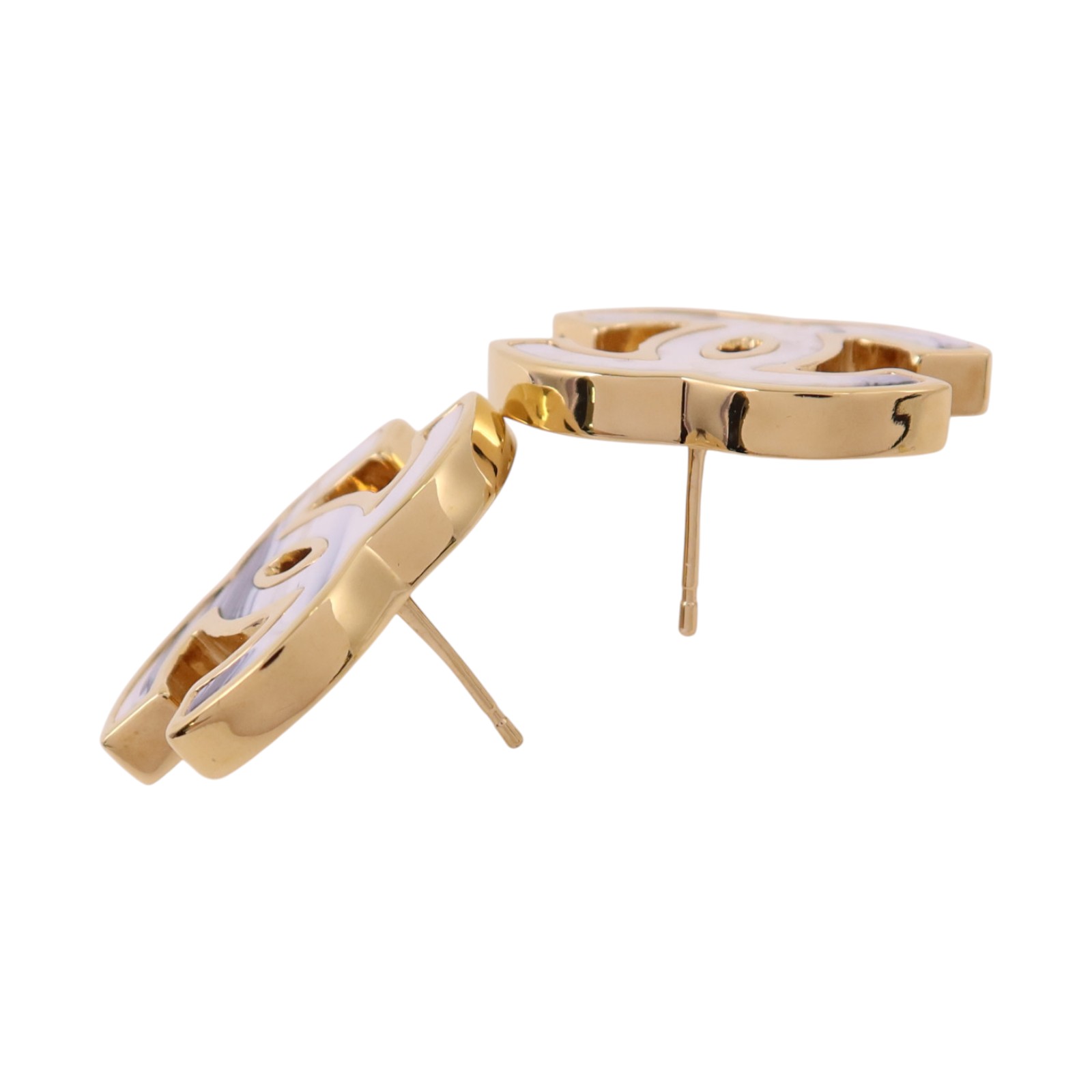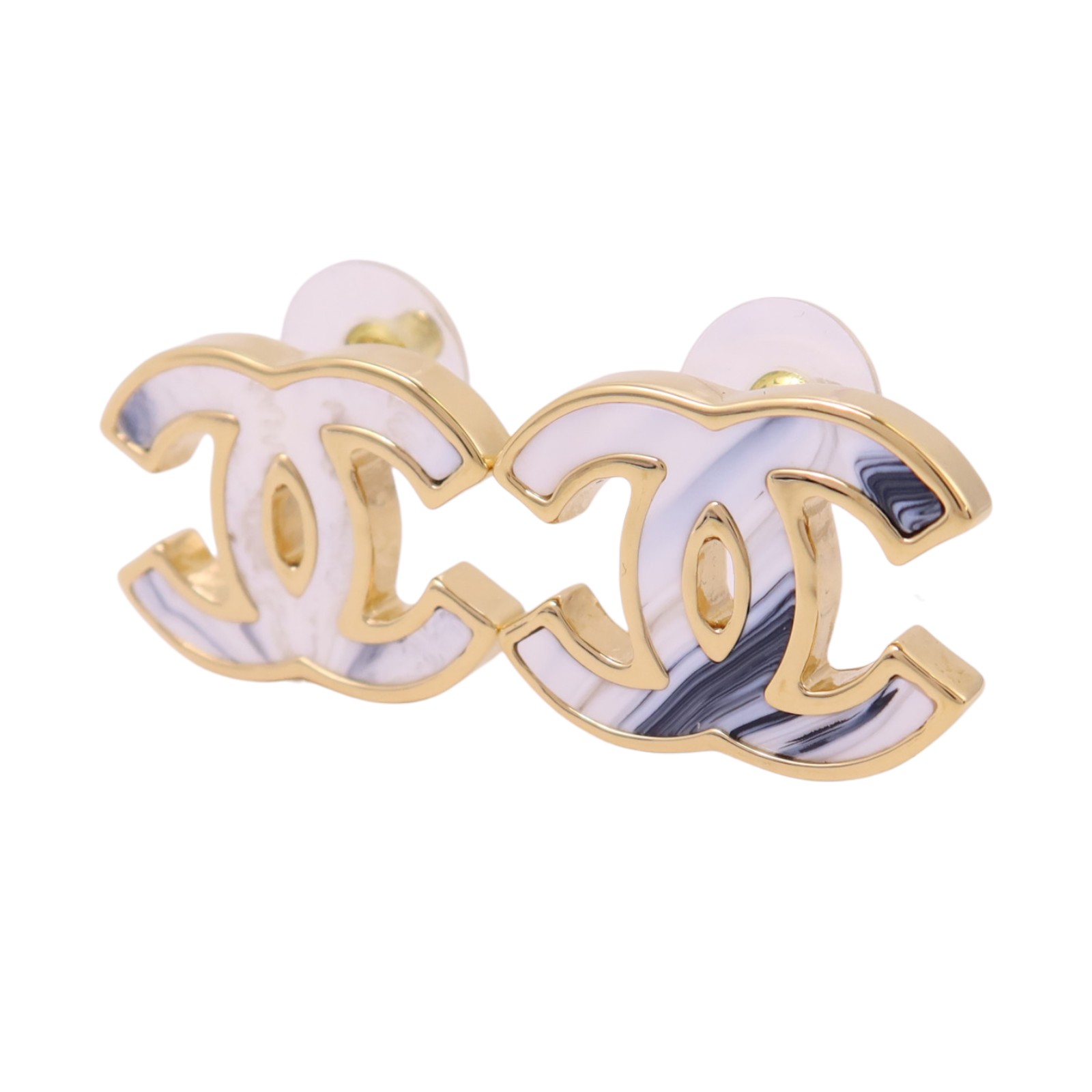 | Item Name | CHANEL CC GHW CC Earrings B23A Metal Enamel White Black Gold |