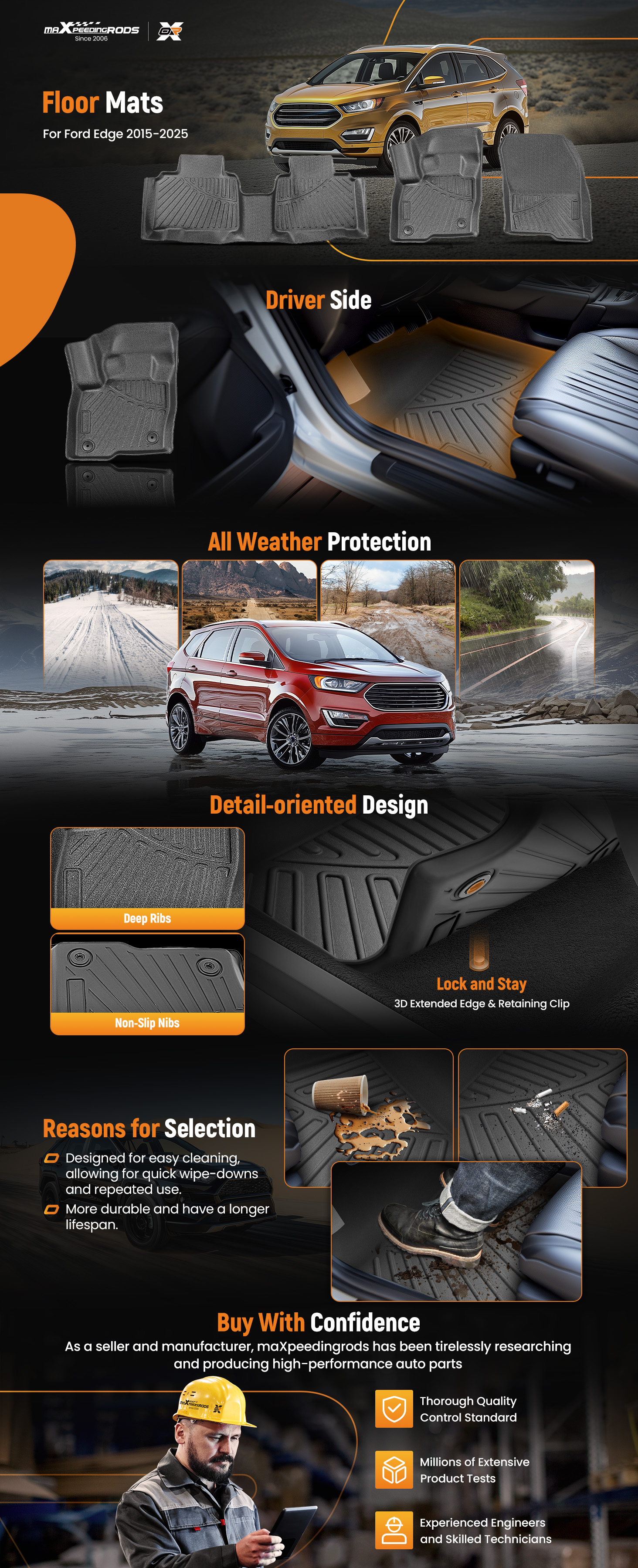 - All-weather protection, Unique designed channels and raised edges can effectively trap the liquid, snow, sand, etc.