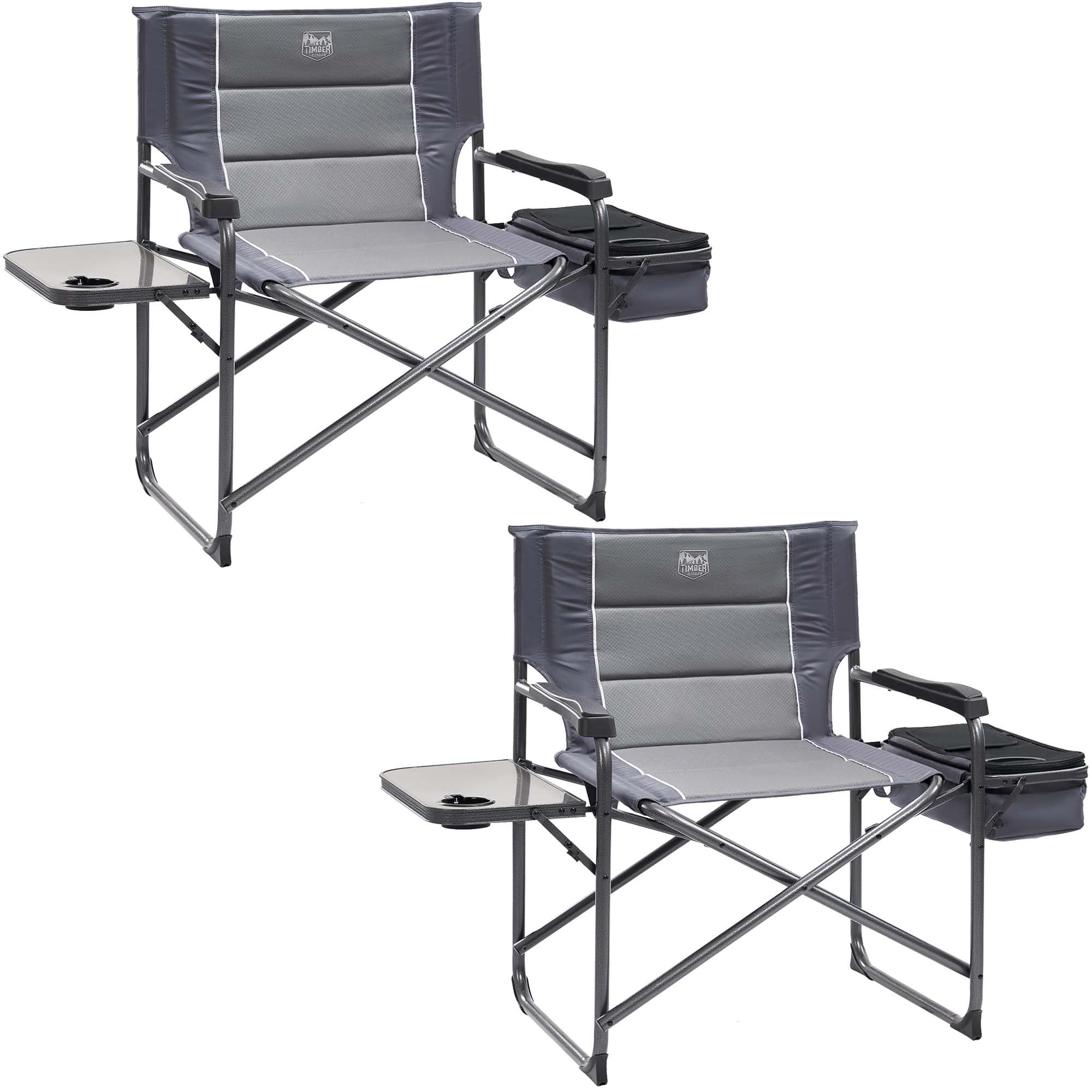 INTEGRATED COOLER: This Timber Ridge folding director's chair is equipped with a flip top cooler for easy access to cold beverages; this camp chair also features an insulated cup holder to keep drinks cool