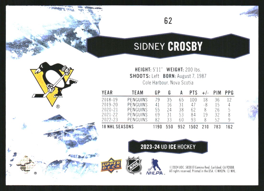 2023-24 Upper Deck Ice #62 Sidney Crosby - HKY