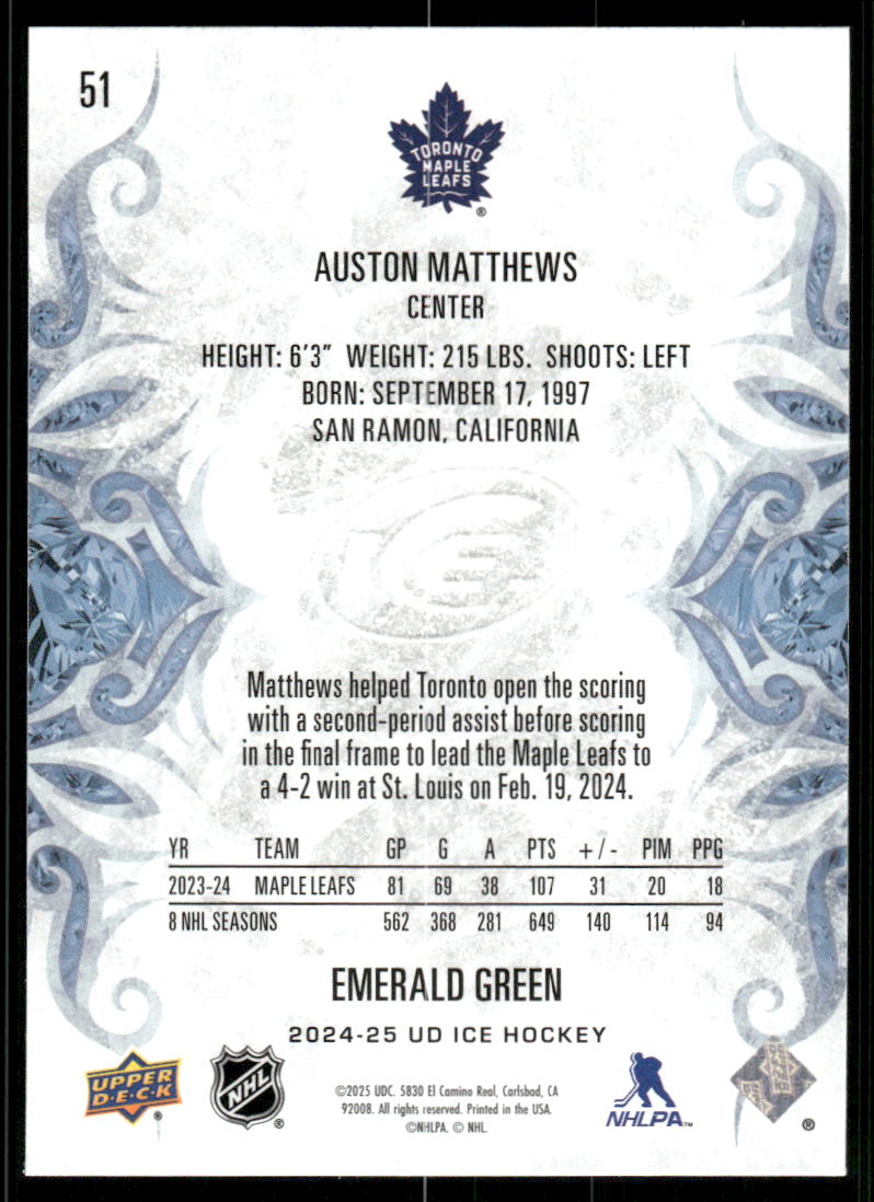 2024-25 Upper Deck Ice Emerald Green #51 Auston Matthews - HKY