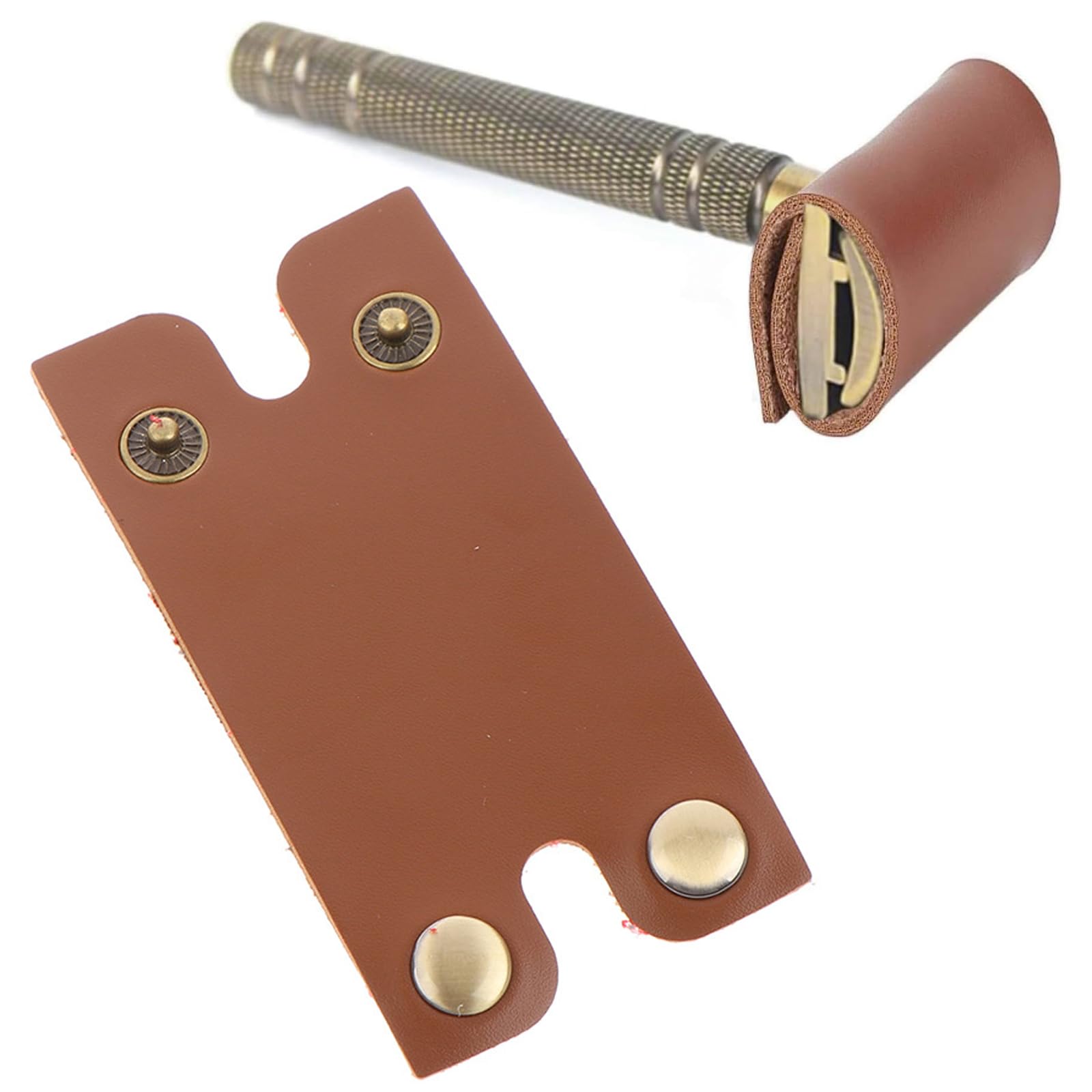 Housse de Rasoir de Sécurité en Cuir - Étui de Protection en marron pour Raso...