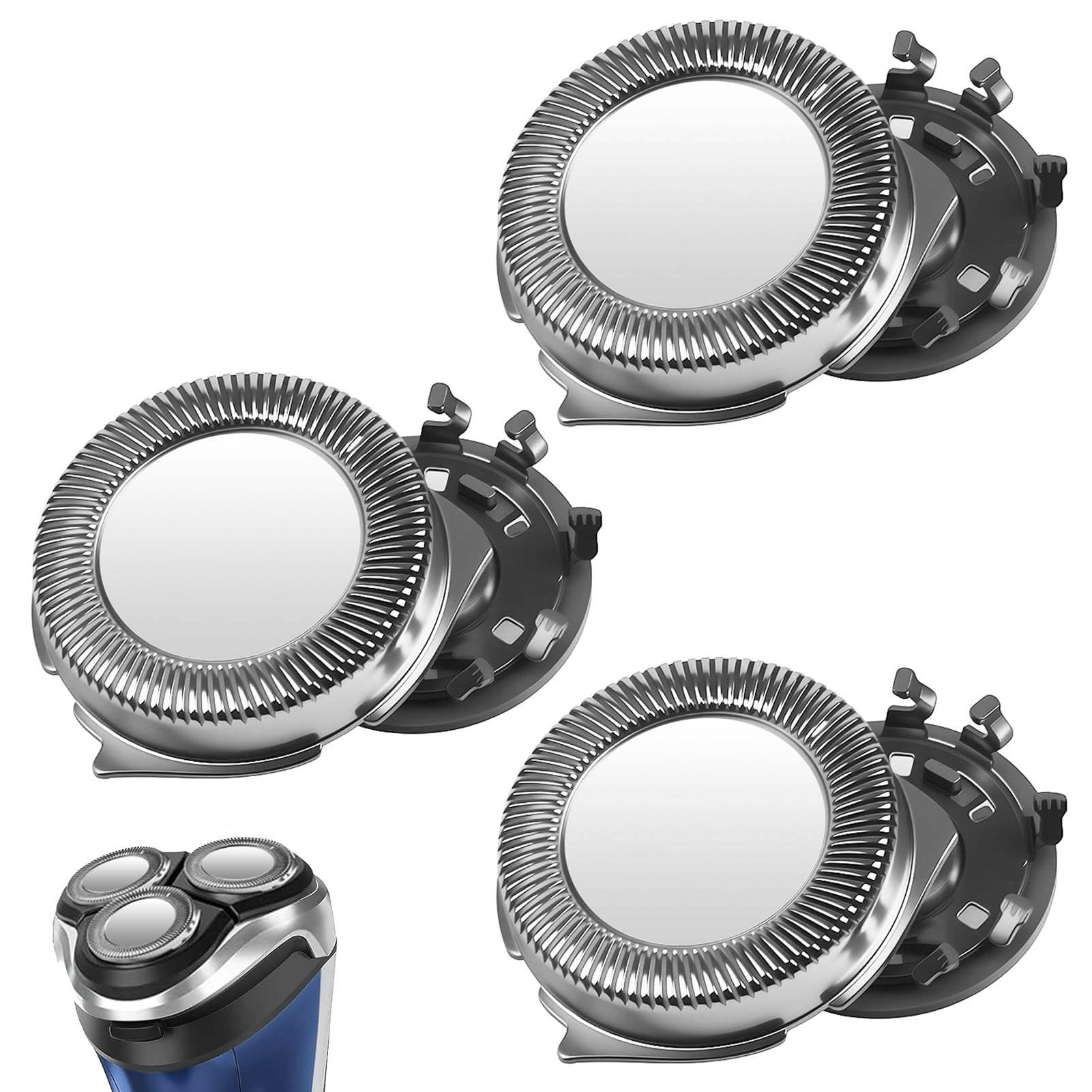 Large compatibilité éprouvée: remplacements SH30/SH50/SH52 pour rasoir électrique des séries 1000/2000/3000 et plusieurs 5000 (hors S55xx). Prise en charge des familles AT8xx/AT7xx/PT8xx/PT7xx et références S1000, S1010, S1020, S1050, S1060, S1070, S3101, S3102, S3201, S3202, S3203, S5200+, S5210, S5380, S5560, S5570/33/43, S5080 et plus. Non compatibles Aquatec. Merci de vérifier la référence exacte de votre rasoir avant achat pour garantir un ajustement parfait. ! Vérifiez - Performance 360° et douceur renforcée: la tête de rasoir rotative à double lame avec anneaux doubles capture davantage de poils à chaque passage, suit naturellement joues, menton et cou et limite les irritations. Convient au rasage à sec ou avec mousse/gel. La géométrie mobile optimise la coupe sur poils courts comme plus longs pour un résultat homogène, net et confortable au quotidien. Idéal peaux sensibles, rasage précis rapide, moins de passages, confort durable quotidien - Installation et entretien facilités: système « clic » sans outil, retrait de l'ancienne tête puis enclenchement immédiat de la nouvelle pour relancer votre routine en quelques secondes. Nettoyage simple sous l'eau ou à la brosse pour éliminer résidus et cuticules. Astuce pro: déposer 1–2 gouttes d'huile, faire tourner 10 s, réduire la friction et optimiser le démarrage pour une coupe plus douce, régulière et silencieuse. Convient au rasage sec ou humide; rinçage simple. net - Durabilité et hygiène optimisées: lames en acier inoxydable, affûtage de précision et tolérances serrées pour une coupe nette durable. Remplacement recommandé tous les 12 mois afin de préserver l'efficacité et la propreté de l'ensemble. Lot économique de 3 têtes avec capuchon protecteur pour un stockage sûr. Emballage hygiénique pour éviter poussières et contacts indésirables, idéal pour conserver des performances constantes au fil des semaines. Économie et entretien planifié - Routine plus rapide & support réactif: moins de passages grâce à la coupe efficace et à l'adaptation aux contours, résultats réguliers avant le bureau, un rendez-vous ou le sport. Pièces compatibles, non originales; marques citées pour l'identification. Conçu pour un rasoir électrique fiable, précis et confortable jour après jour. Confort cutané et gestes intuitifs, effort