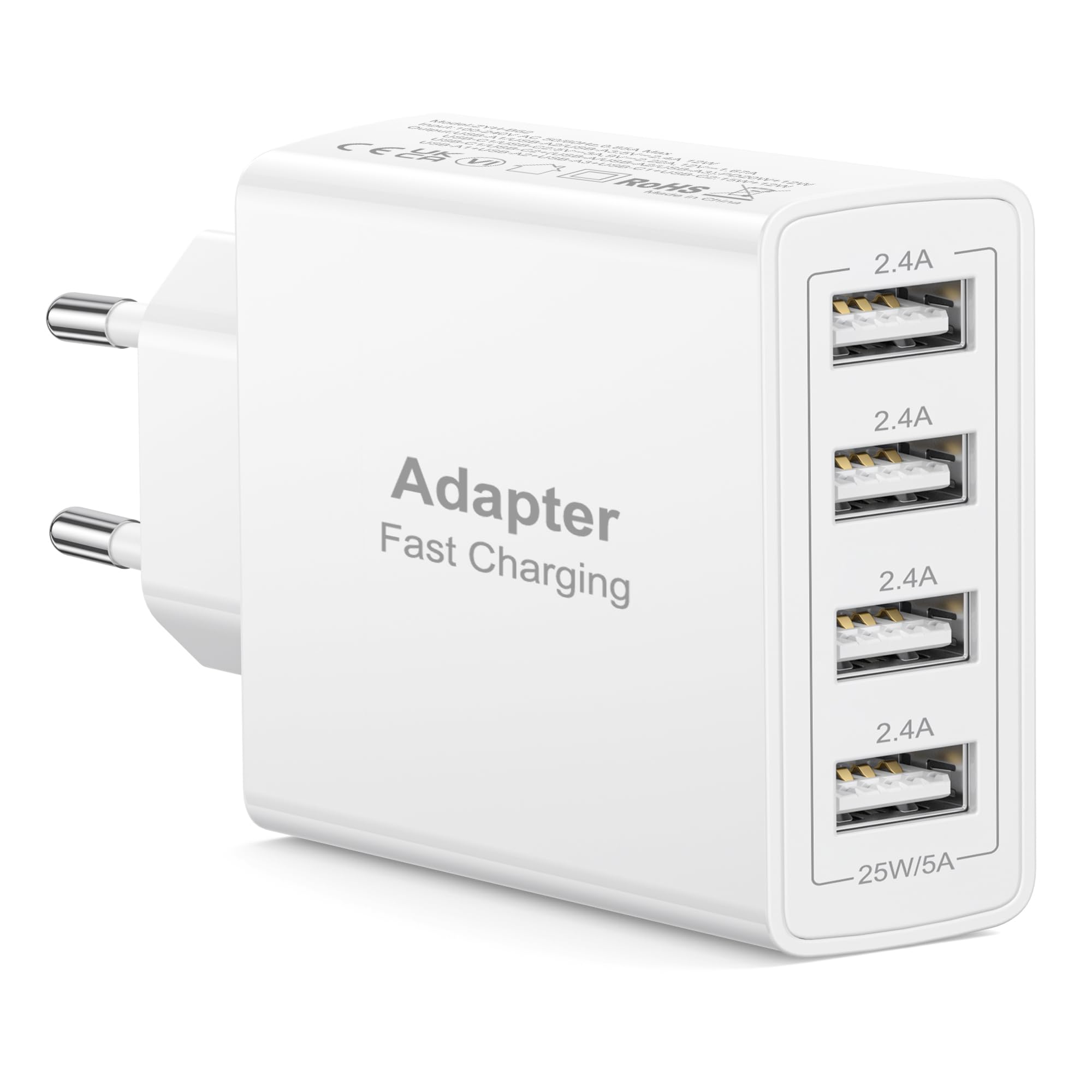 Compatibilité Universelle du Prise USB: Le chargeur USB est conçu pour fonctionner avec une large gamme d'appareils. Prise secteur USB est compatible avec l'iPhone 17/17 Air/17 Pro/17 Pro Max/iPhone 16/16E/16 Pro/16 Pro Max/15/15 Plus/15 Pro/15 Pro Max/14/14 Plus/14 Pro/14 Pro Max/13 Pro Max/ 13 Pro/ 13/ 13 mini/12 Pro Max/12 Pro/12/12 mini/11 Pro Max/ 11 Pro/ 11/ XS MAX/ XS/ X/ XR/ 8 Plus/ 8/ SE, AirPods Pro, iPad. Samsung Galaxy S25 Ultra/S24/S23 Ultra/S23/S22/S22+/S22 Ultra/S21/S21 Ultra/S21/S20 Ultra/S20+/S10+/S10/Note 20 Ultra/Note 20/A31/A32/A50S/A51/A52/M30/M31/M31S/M51/M62, Galaxy Z Fold series, Galaxy Z Flip series, und LG, Google. - Multi Prise Chargeur Rapide USB: Ce bloc chargeur USB fournit 5V/2,4A par port (25W de sortie totale), ce qui vous permet de charger simultanément plusieurs appareils (smartphones, tablettes, écouteurs, etc.) à pleine vitesse. La puce intelligente intégrée du prise chargeur USB détecte et délivre automatiquement le courant de charge idéal à chaque appareil connecté pour optimiser la vitesse et l'efficacité de la charge. Parfait pour les familles, les voyageurs ou les bureaux, lorsque vous avez besoin d'alimenter plusieurs appareils électroniques à la fois. - Sécurité et Fiabilité Prise Multiple USB: Les protections intégrées du chargeur multi USB protègent vos appareils contre les risques de surchauffe, de surtension, de surintensité et de court-circuit. Le prise chargeur USB arrête automatiquement la charge lorsque les appareils atteignent leur pleine capacité, évitant ainsi toute surcharge. Vous pouvez charger vos appareils en toute tranquillité. - Durable Chargeur USB Multiple: Fabriqué à partir d'un matériau ABS écologique de haute qualité et de circuits conçus avec précision, ce chargeur USB A est conçu pour durer. Le boîtier renforcé et les ports USB à résistance industrielle du prise USB multiple résistent aux branchements et débranchements quotidiens, offrant ainsi des performances fiables. - Emballage et Service Après-Vente de Adaptateur USB Secteur: Vous recevrez 1* chargeur USB rapide. Notre équipe d'assistance se tient à votre disposition pour répondre à vos questions sur les produits et leur utilisation. Nous vous garantissons une réponse dans les 24 heures afin d'assurer votre entière satisfaction.