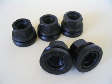 Ford OEM Style 1/2" Lug Nuts with Built-in Washers 980025 This set includes 32 pieces brand new special Ford OEM style 1/2" lug nuts with built-in washers. These lug nuts fit 55-79 F250/F350 Ford Superduty pickups (some of 55-79 Superduty pickups may use 9/16" thread size instead). These fit some Ford 5 lug pickup models, too. The overall height is 7/8". 98-0025 |