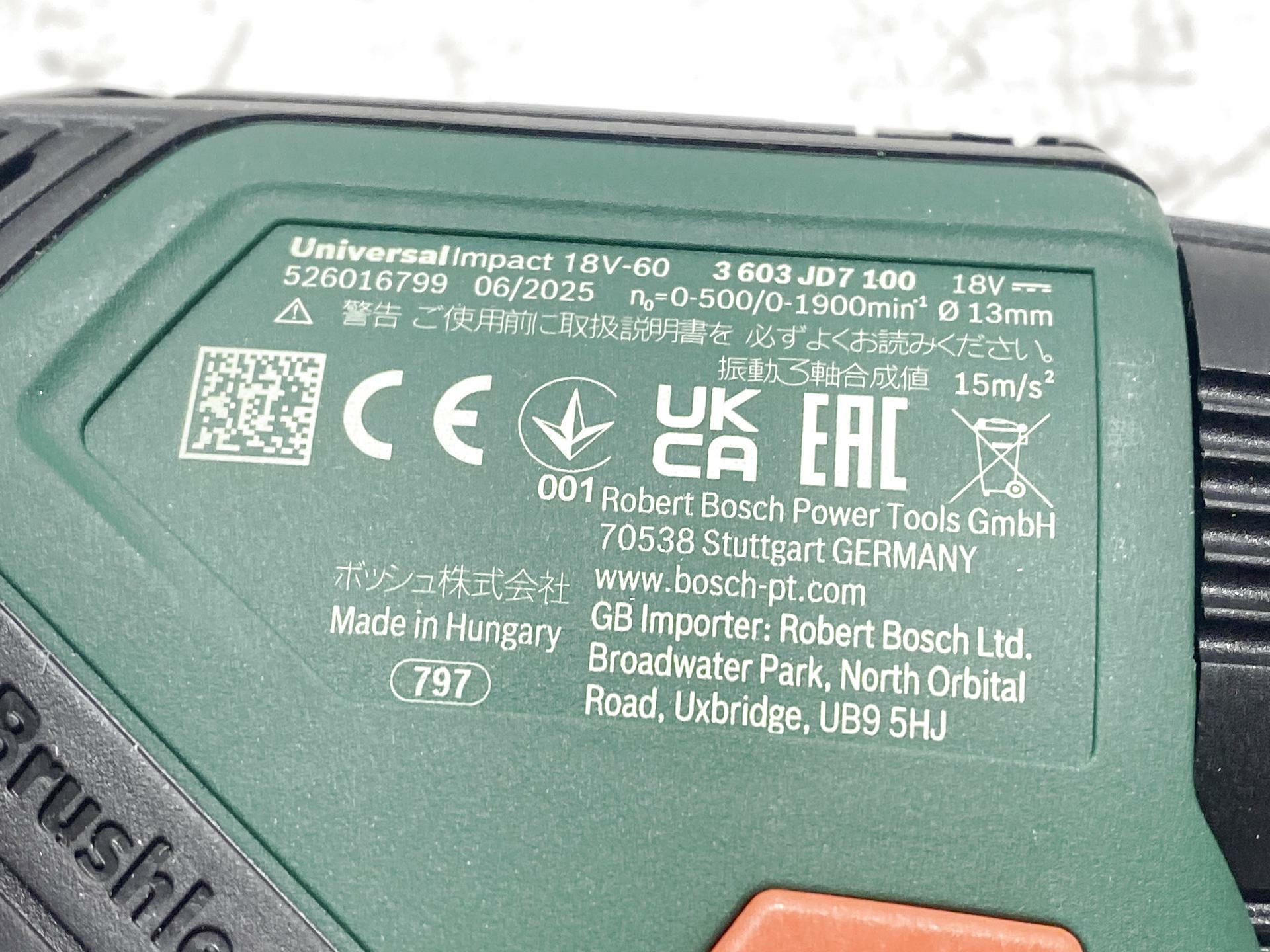 L'OBJET DE L'ENCHÈRE EST : 240670 Perceuse visseuse à percussion Bosch UniversalImpact 18V-60 B-WARE