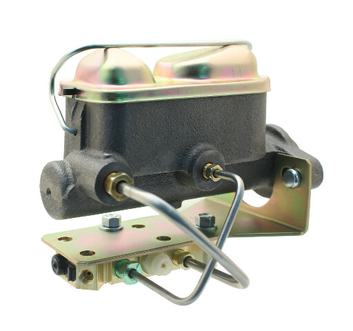This master cylinder is designed for disc/disc brake systems and includes a bottom-mount proportioning valve with pre-installed ports and lines, accommodating both power and manual brake setups. Ensure compatibility with your vehicle's brake system before installation. Professional installation is recommended to achieve optimal performance and safety.