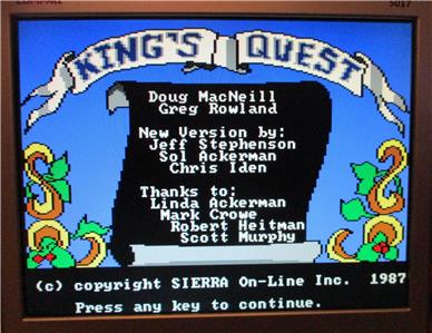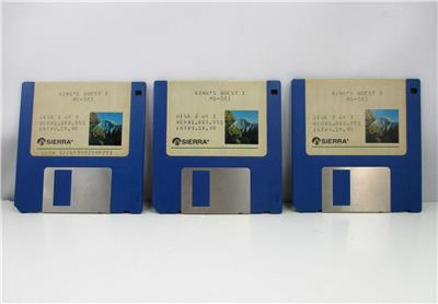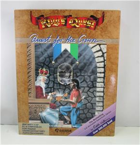 This is a 1987 "King's Quest I "Quest for the Crown" big box PC 3.5" floppy disks (3) with manual and paperwork in very good condition. Tested on a PC computer running DOS.