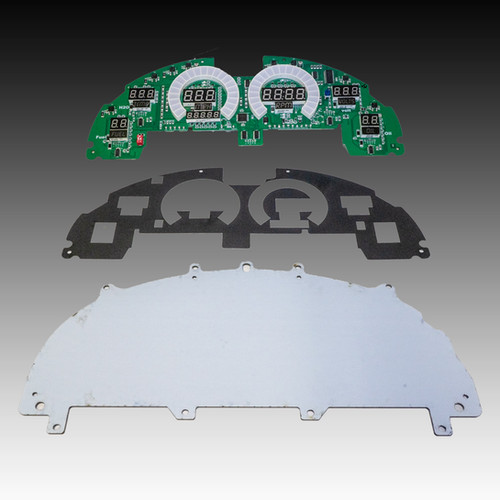 The modernized dash kit comes complete with direct fit printed circuit board, custom fit smoked plexiglass faceplate, universal temperature & oil pressure sending units.