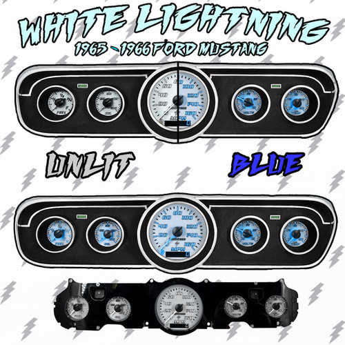 Intellitronix Blue LED Analog Gauge Cluster Set Replacement With White Faceplate With GPS Speedometer Sending Unit For 1965-1966 Ford Mustang