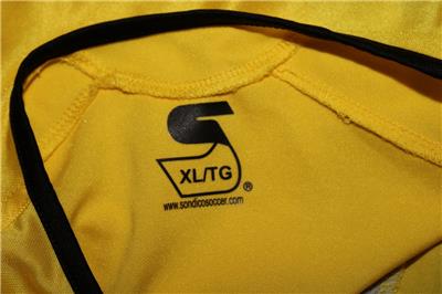 PLEASE READ!!, SONDICO MENS GOALIE JERSEY IS IN GOOD CONDITION OVERALL W/ SOME SIGNS OF WEAR ON THE SURFACE FROM PREVIOUS PLAY/USE & STORAGE, THERE IS SOME FABRIC WEAR ON OUTER SURFACE OF THE FRONT W/ SOME SMALL SNAGS/PILLS PRESENT ON THE YELLOW FABRIC ON THE FRONT, SNAGS ARE SCATTERED IN THE MIDDLE AND FEW OTHER AREAS ON THE SURFACE, VERY CLEAN AND SHARP SONDICO JERSEY STILL AND IN GOOD CONDITION OTHERWISE, WASHED/CLEANED AND READY FOR USE!!, PLEASE REFER TO PICS FOR SPECIFICS ON CONDITION, SOLD AS-IS AND NO RETURNS FOR SIZING ISSUES SO PLEASE REFER TO ALL DETAILS PROVIDED IN THE DESCRIPTION AND ASK ANY QUESTIONS YOU HAVE PRIOR TO BIDDING!!