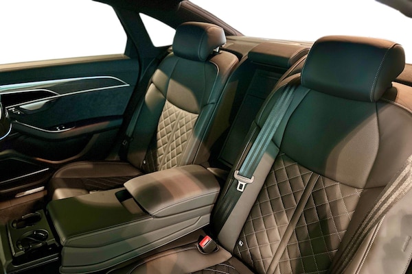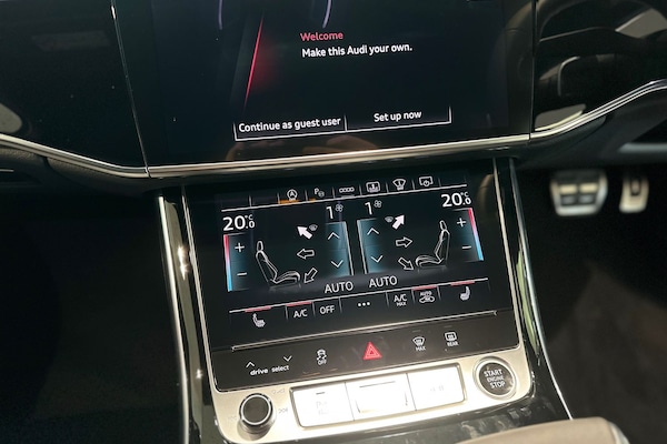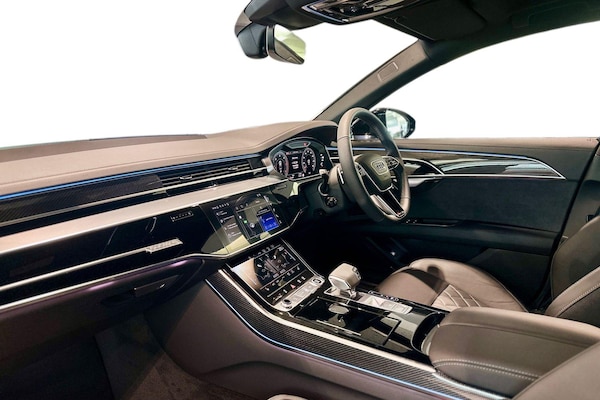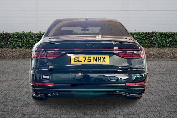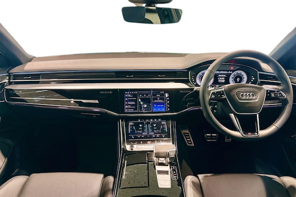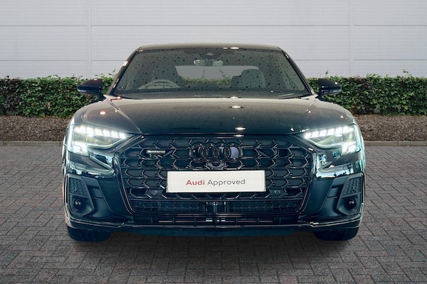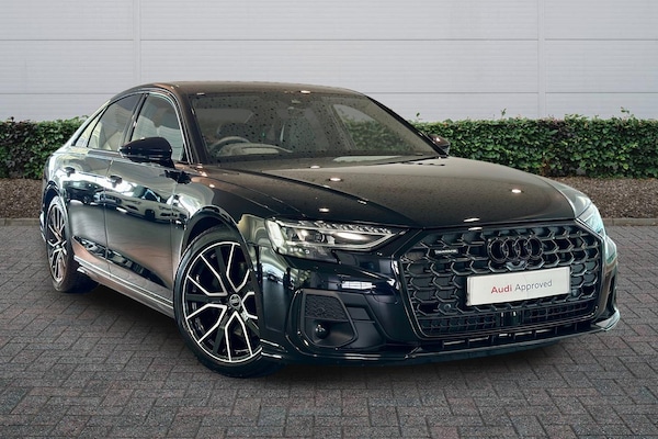 Available from 02/04/2026. Audi A8 Diesel Saloon 50 TDI Quattro Black Edition 4dr Tiptronic in Sebring black, crystal effect. Specification Includes Operating permit, alteration,Remote Park assist Plus,Operating buttons, black glass,Decorative Aluminium strips,360° cameras,Valcona leather seat covers,Parking Assist Pack,Comfort seats with memory feature,Digital matrix lights,Privacy glass,Extended LED Interior Lighting Pack,Front Sports Seats,Pedal cluster in stainless steel,Scuff plates in door apertures,Acoustic double glazing,Equipment package for Great Britain,Technology Pack,Internal control code,Leather-wrapped multi-function steering wheel, 3-spoke, with shift paddles,S line bumpers,Omission of output/technology logo,Power-adjustable front seats with memory feature,Black Styling package plus,Audi Sport wheels, 5-V-spoke star, Anthracite Black, gloss turned finish, 9.0J x 20, 265/40 R20 tires,Upper inlays, Carbon Vector,Emblems,Cloth headlining - black,Ext mir elec/fold/heat/dim/mem,Parking Assist with Parking System Plus,Matrix HD lights,Digital Matrix Headlights,Headlight washers,B&O 3D Premium Sound System,Equipment options subset for Great Britain.