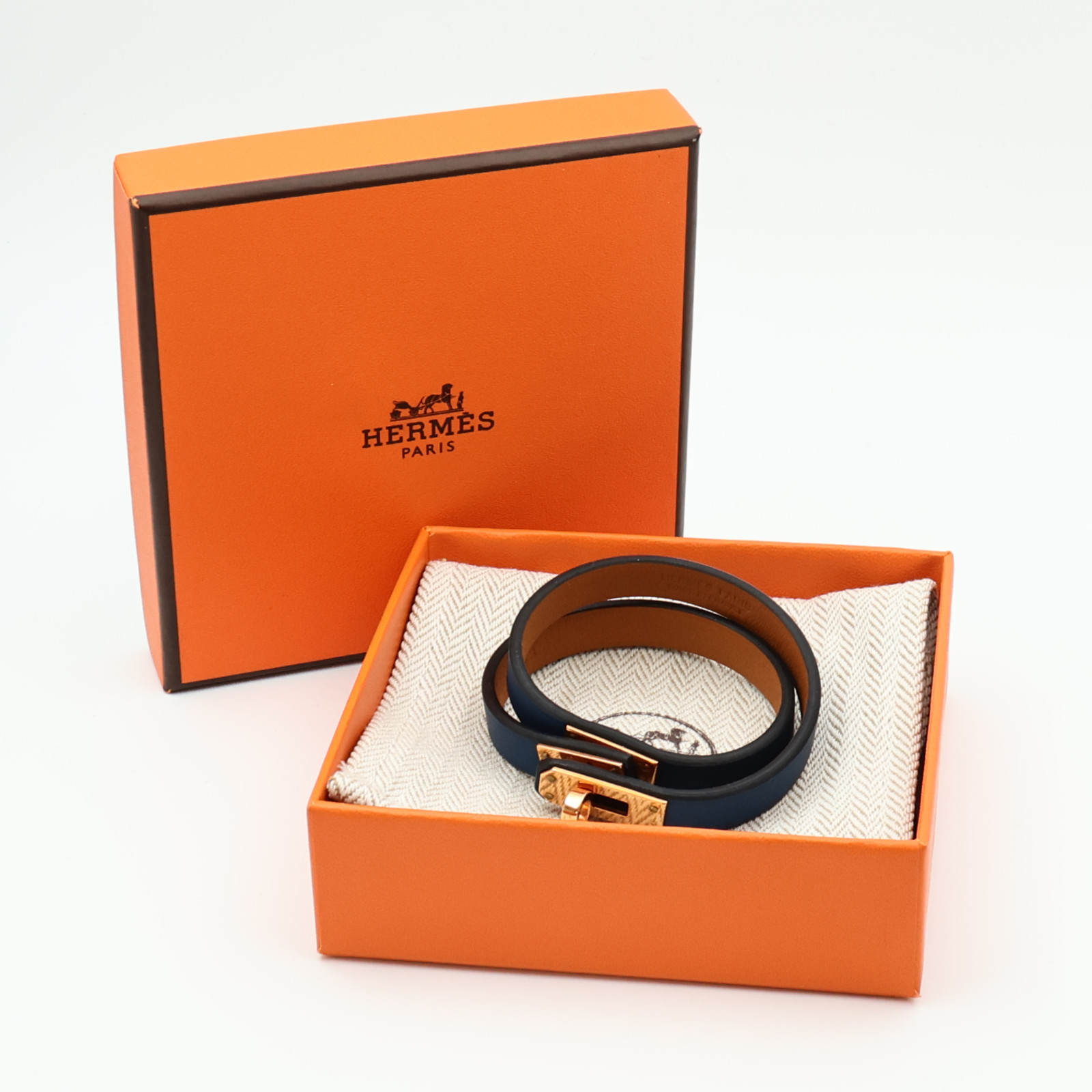 | Item Name | HERMES GHW Mini Kelly Double Tour Bracelet Swift Leather Navy |