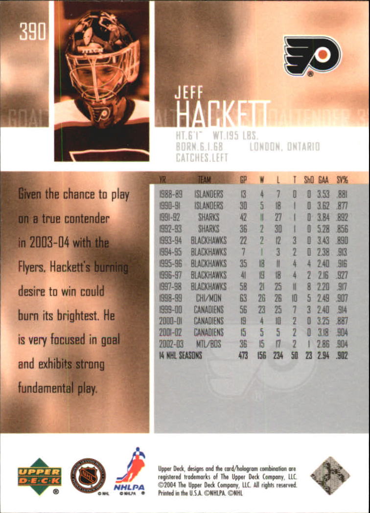2003-04 Upper Deck #390 Jeff Hackett - HKY