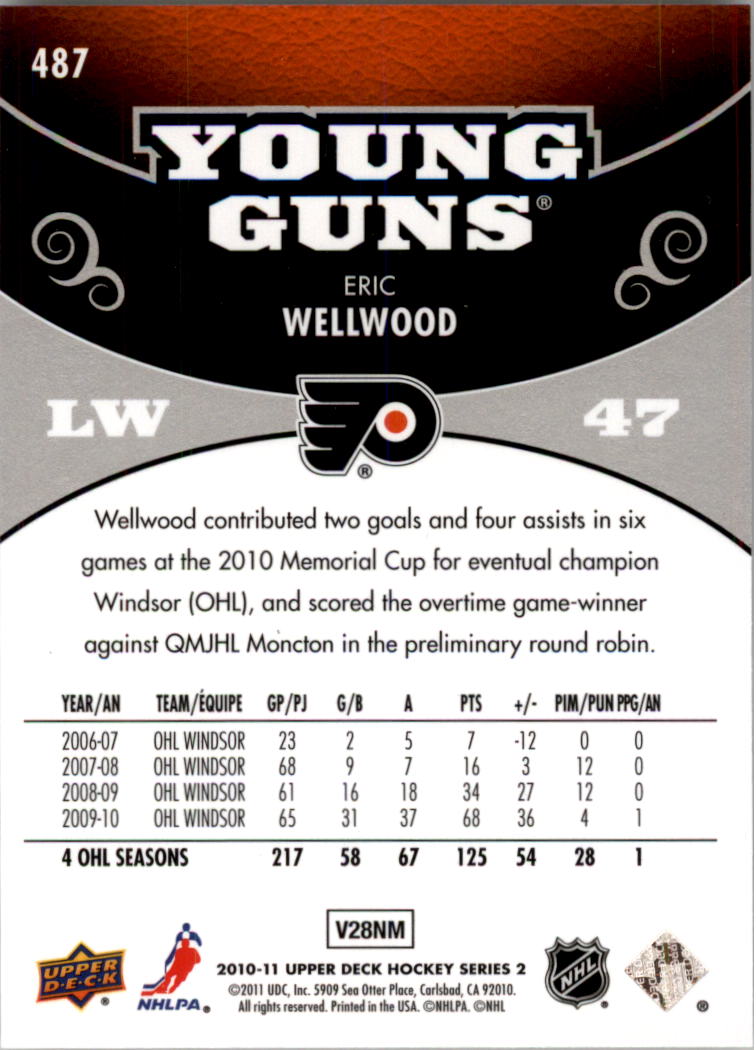 2010-11 Upper Deck #487 Eric Wellwood YG RC - HKY