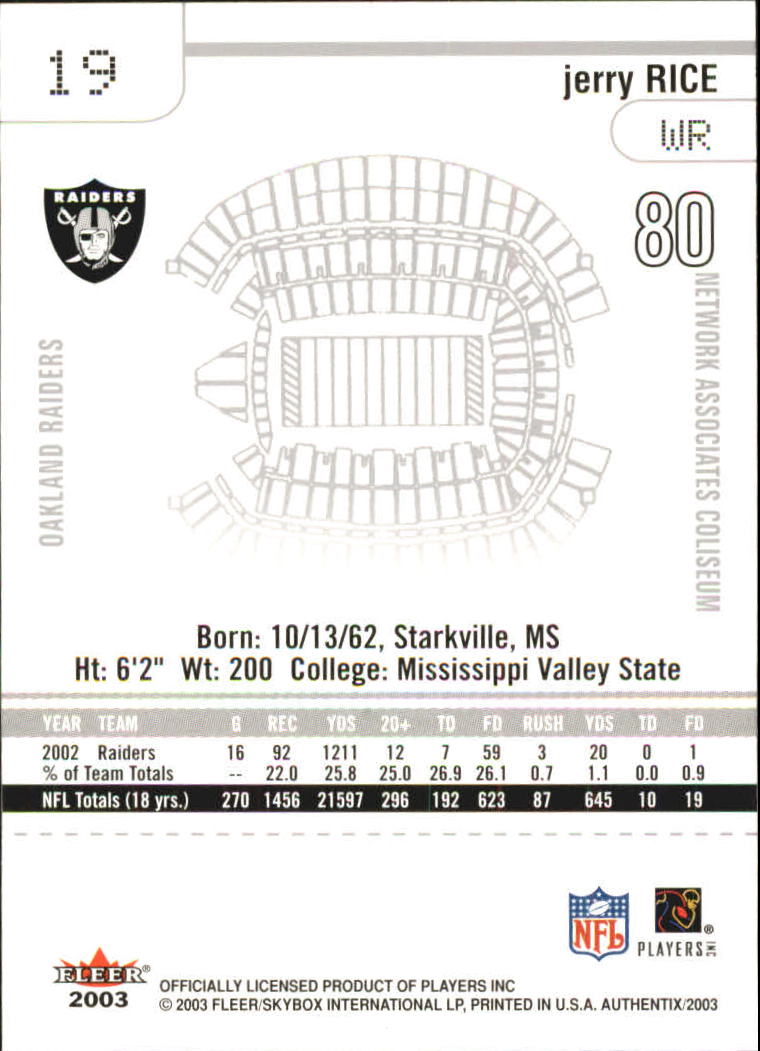 2003 Fleer Authentix #19 Jerry Rice - FB