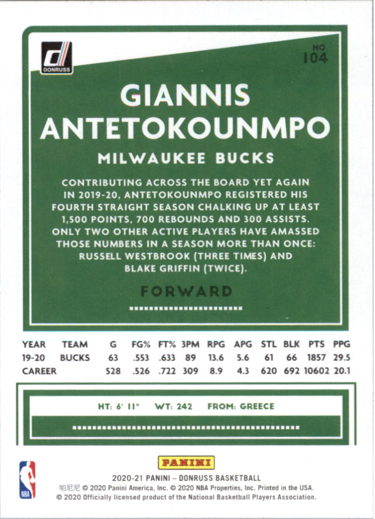 2020-21 Donruss #104 Giannis Antetokounmpo - BSK