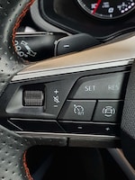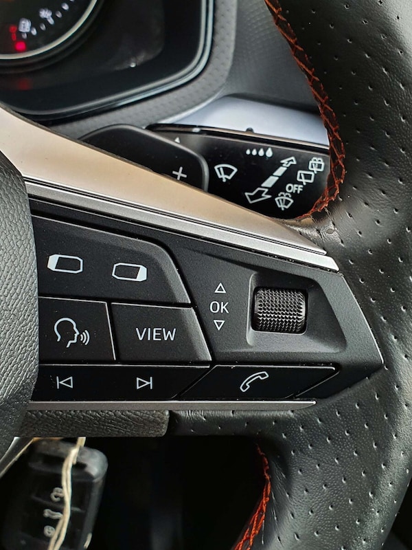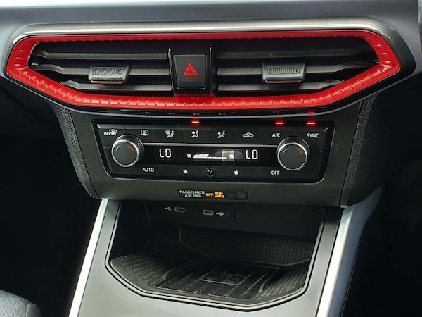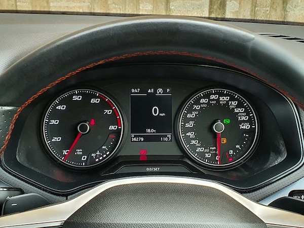 ..'Lights On' Reminder warning buzzer, Digital clock, E-call, Electric speed sensitive power steering, Full Link Smartphone Integration with Mirror Link, Apple Car Play, Google Android Auto with USB Type C cable for Apple and Android compatibility, Lane keeping system, Low fuel warning light, Outside temperature display, Rear parking sensor, RPM counter, Seat connect with safety, service, remote and online, SEAT Drive profile - Four different models normal-sport-eco-individual, steering response, throttle response and gear shifts mode, Trip computer, Bluetooth interface for hands free and audio streaming, DAB digital radio and AM/FM radio, Steering wheel mounted audio controls, Anti theft roof antenna, Auto dimming interior rear view mirror, Automatic activation of hazard warning lights, Body coloured bumpers, Body coloured door handle inserts, Chrome roof rails and window surrounds, Chrome window trim, Dark tinted rear windows, Electric front/rear windows, Electrically adjustable, heated and folding door mirrors, FULL LED automatic headlights with dynamic headlight range control, coming and leaving home, LED daytime running lights, LED rear tail lights and licence plate lights, Protective side mouldings, Rain sensing wipers, Rear side wing doors, Rear spoiler, Rear window wash/wipe, Roof colour door mirrors, Third brake light, Twin exhaust pipe styling hidden exhaust pipe, Visible VIN plate, Windshield wiper with intermittent control and potentiometer, 2 cupholders, 3 seat bench in 2nd row, 60/40 split folding rear seat, Aircare filter, Black interior roof, Cloth upholstery, Double boot floor, Driver sunvisor with covered mirror + card holder, Dual zone climate control, Front courtesy light with front and rear reading lights, Front sport seats, Gear shift indicator, Height adjustable front seats, Height/reach adjustable steering column, Illuminated boot, Instrument lighting with brightness control, Interior ambient lighting, Interior light in footwell, central console and door panel, ISOFIX points in outer rear seats with top tether anchorage points, Passenger sunvisor with vanity mirror, Perforated flat bottomed leather steering wheel/gear knob/handbrake with red stitching and FR logo, Single front passenger seat, Steering wheel mounted gearshift paddles, Two front and three rear height adjustable headrests, Connectivity pack plus - Arona, Interior chrome pack - Arona, 3 point seatbelts on all rear seats, ABS, Active front headrests, Child locks on rear